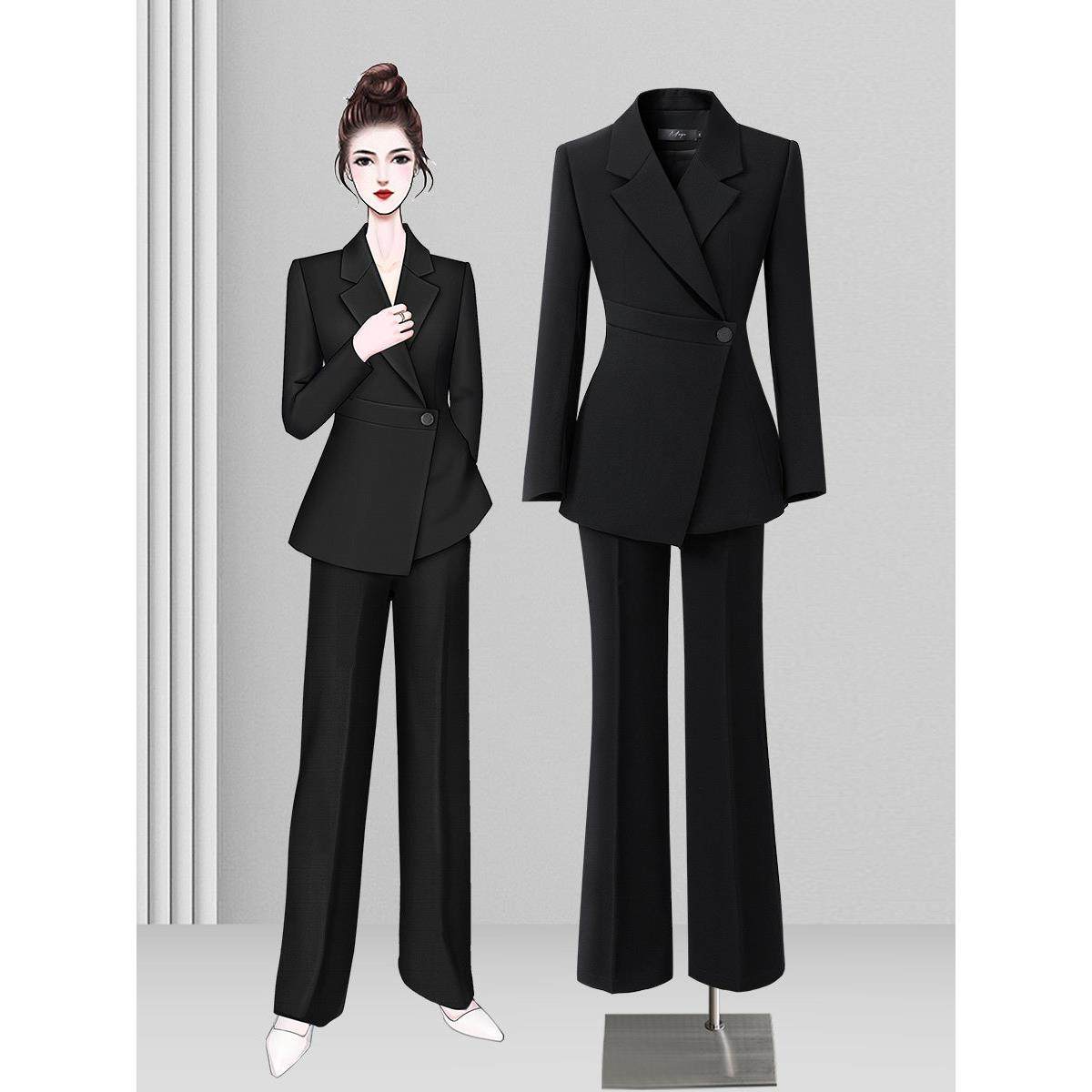 黑色西装套装女春秋阔腿裤职业装通勤上班正装气质女神范休闲西服