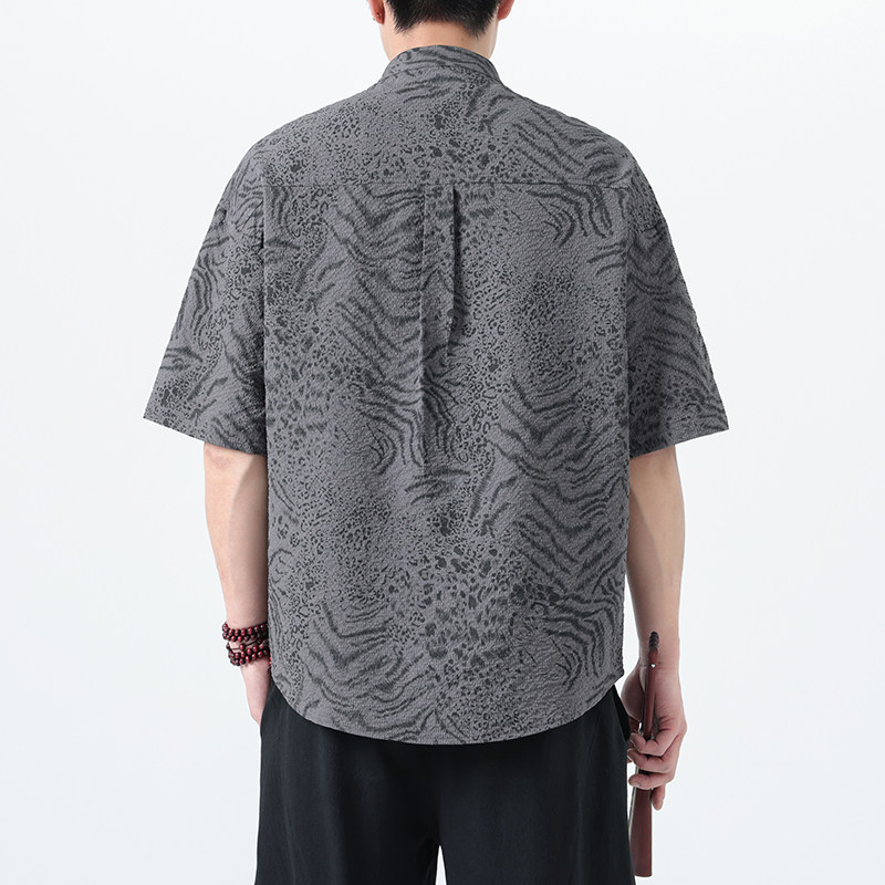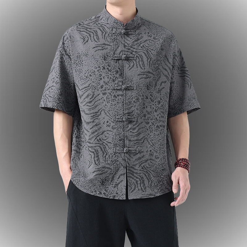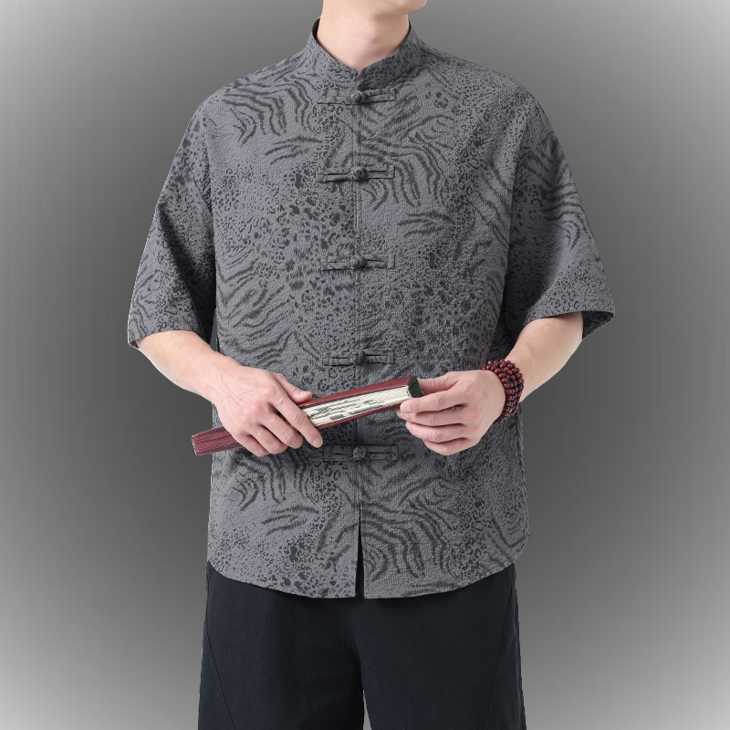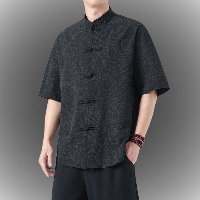 夏季薄款男士衬衫短袖新中式复古中国风大码唐装衬衣印花半袖茶服