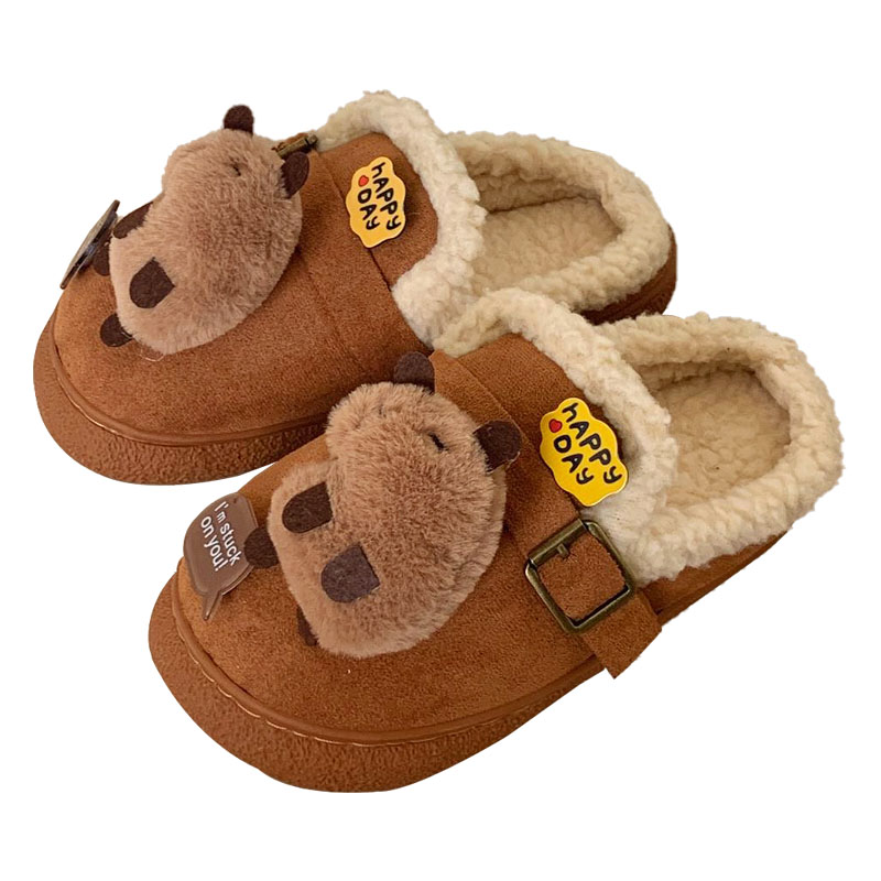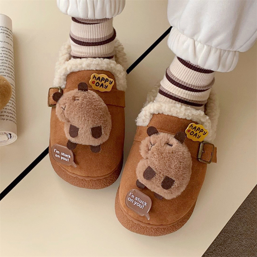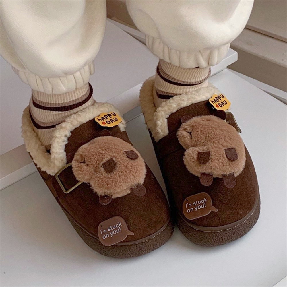 细细条 趣味卡皮巴拉水豚棉拖鞋女冬季室内外穿保暖ins复古勃肯鞋