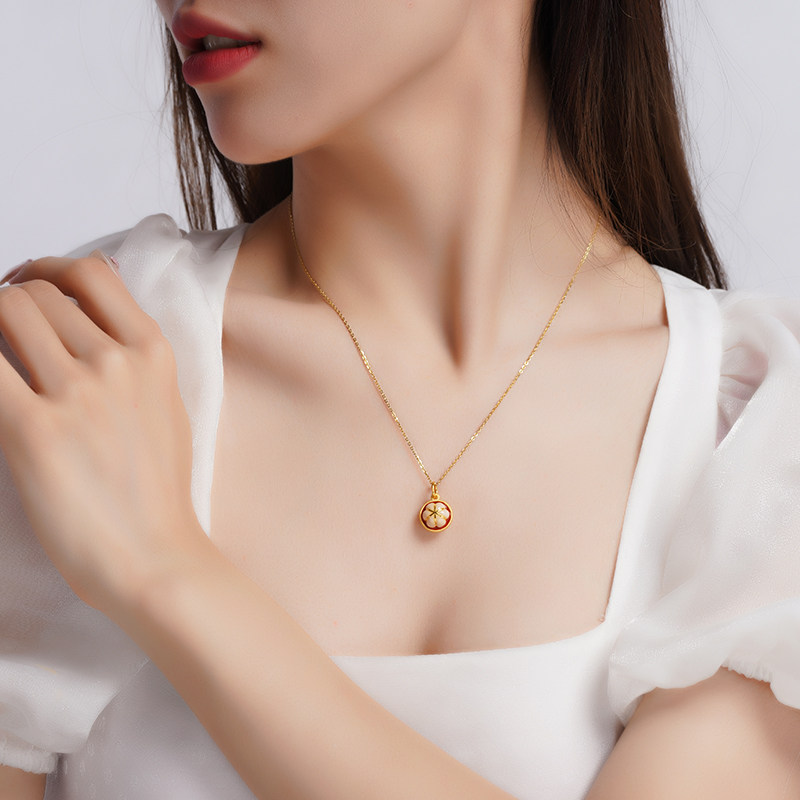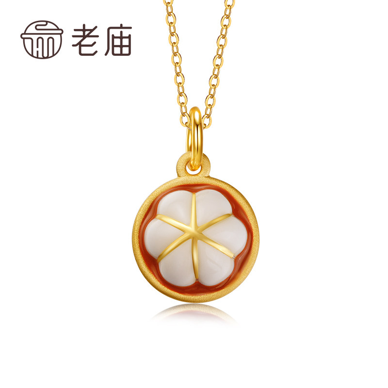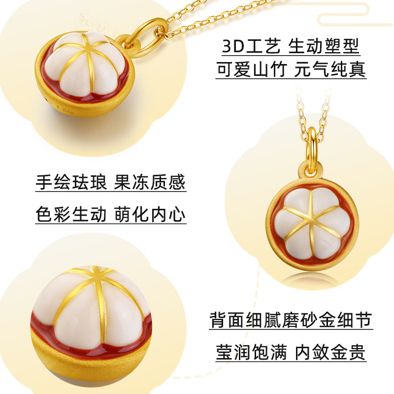 老庙黄金足金水果山竹珐琅工艺挂坠吊坠项链3D女款礼物官方正品
