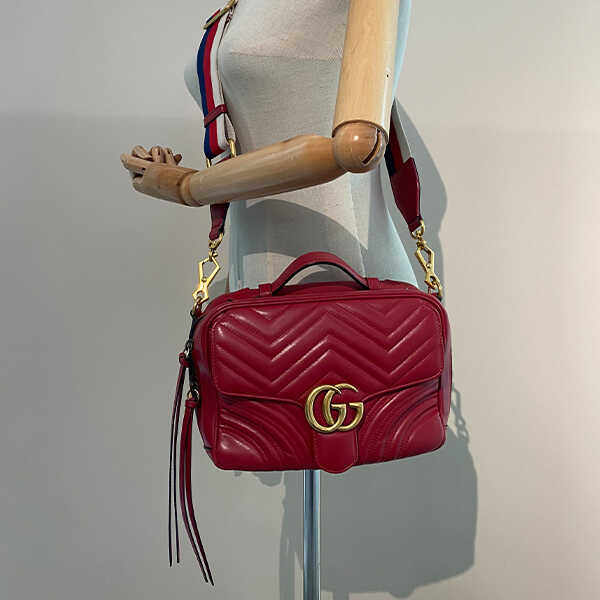 9新GUCCI古驰GG MARMONT手提肩背红牛皮斜挎498100二手奢侈品包包