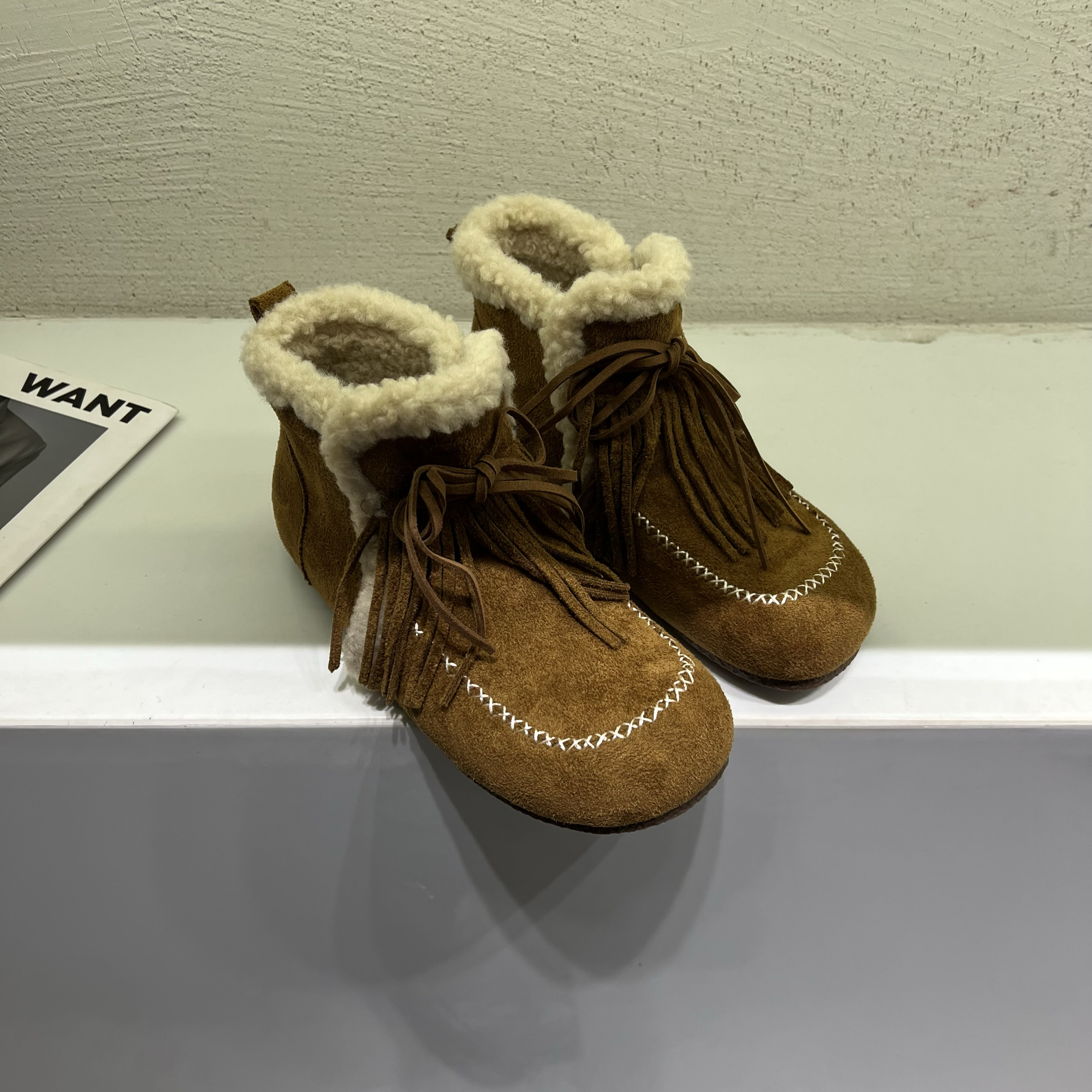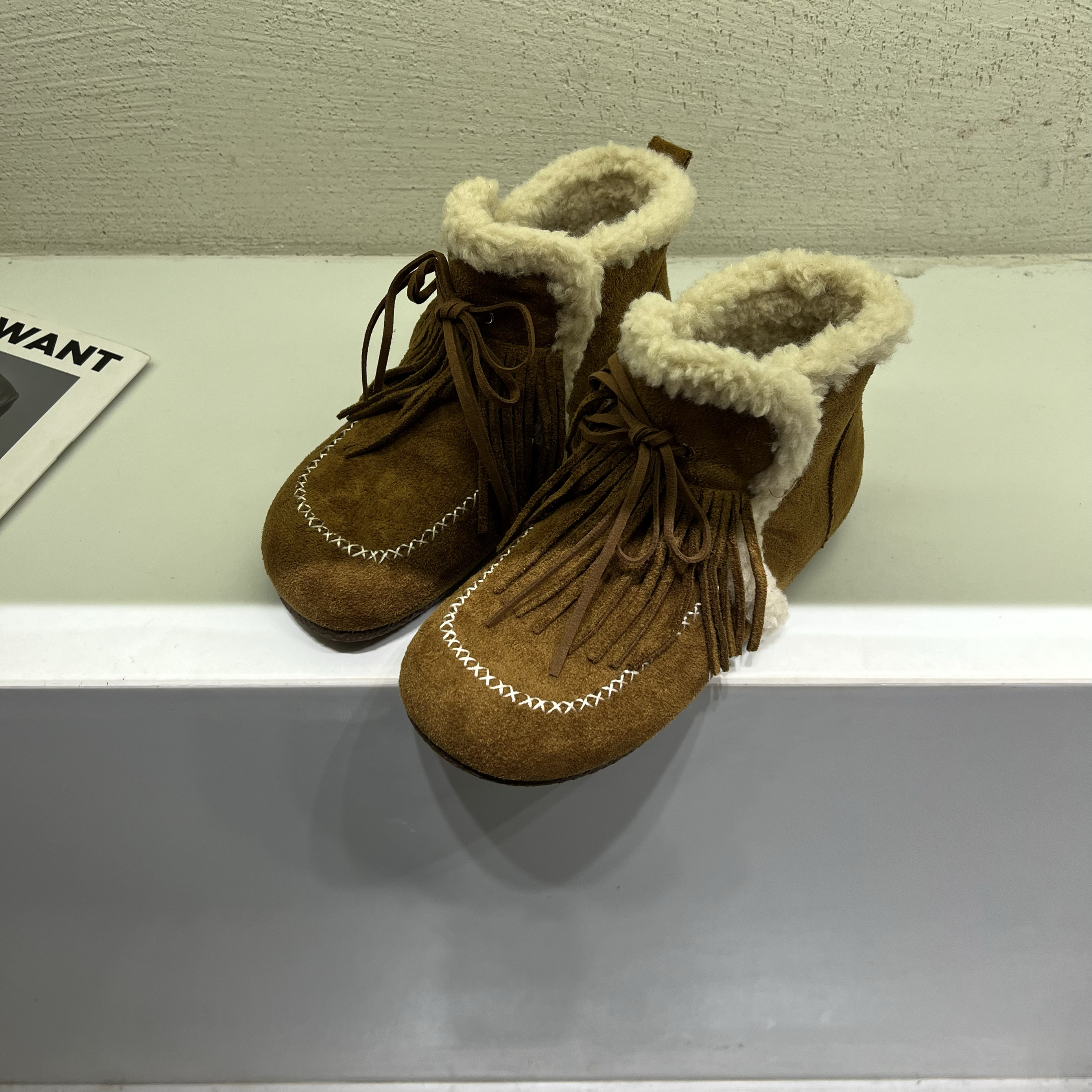 复古流苏厚底雪地靴女25冬季圆头百搭加绒保暖舒适棉鞋勃肯马丁靴
