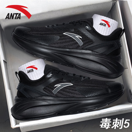 安踏男鞋毒刺6代5代跑步鞋秋季皮面鞋子黑武士配色跑鞋男运动鞋男