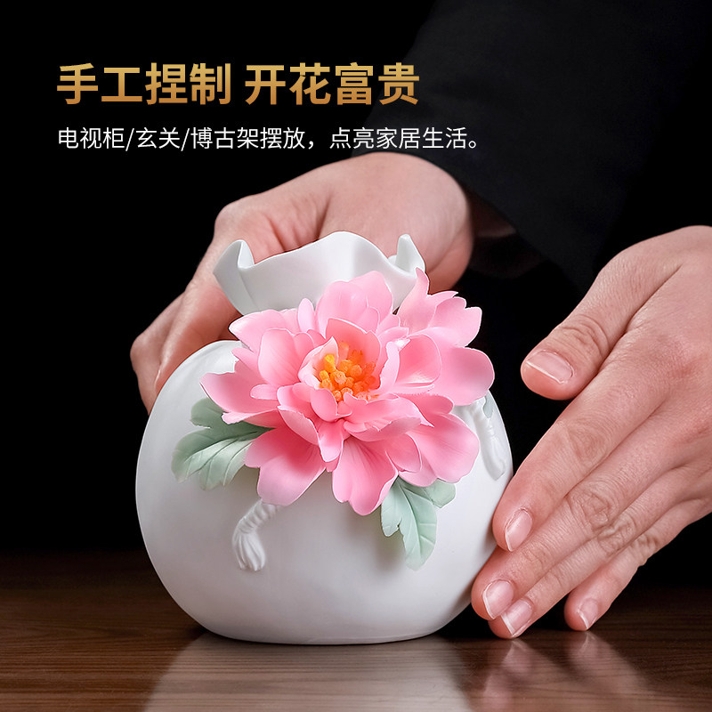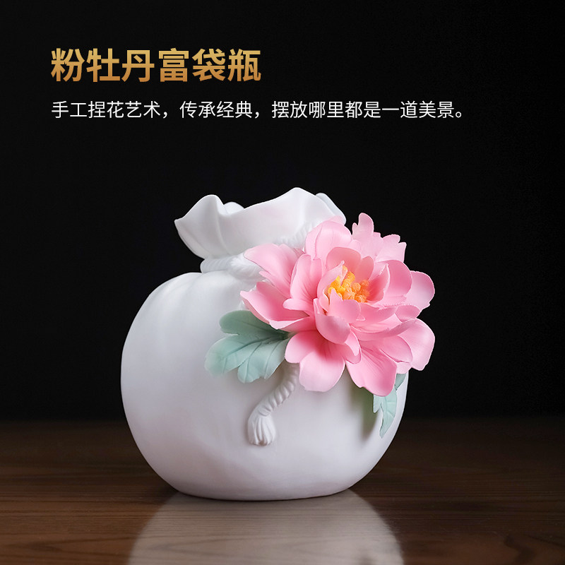 东方泥土《代代有福》陶瓷手工花瓶摆件办公室书房茶室桌面小花器