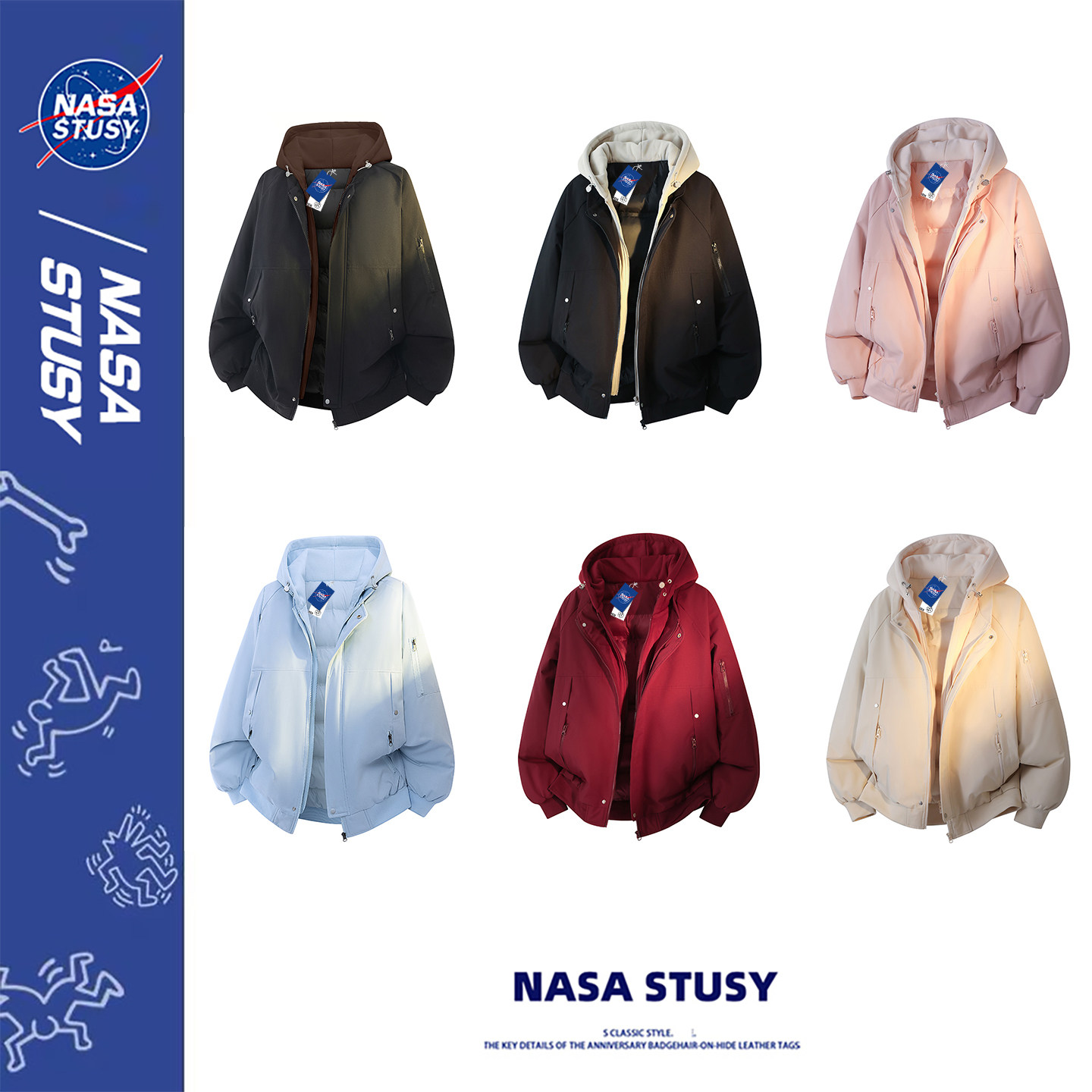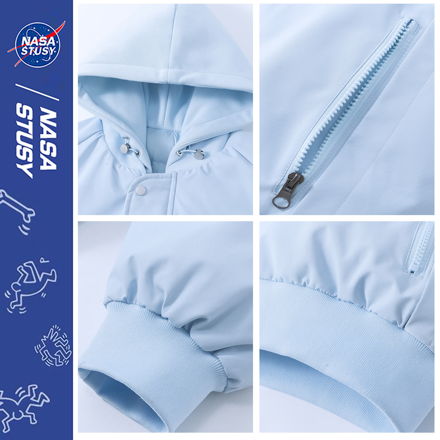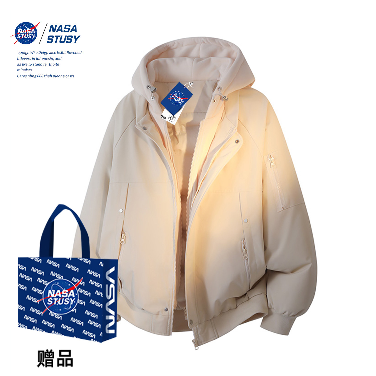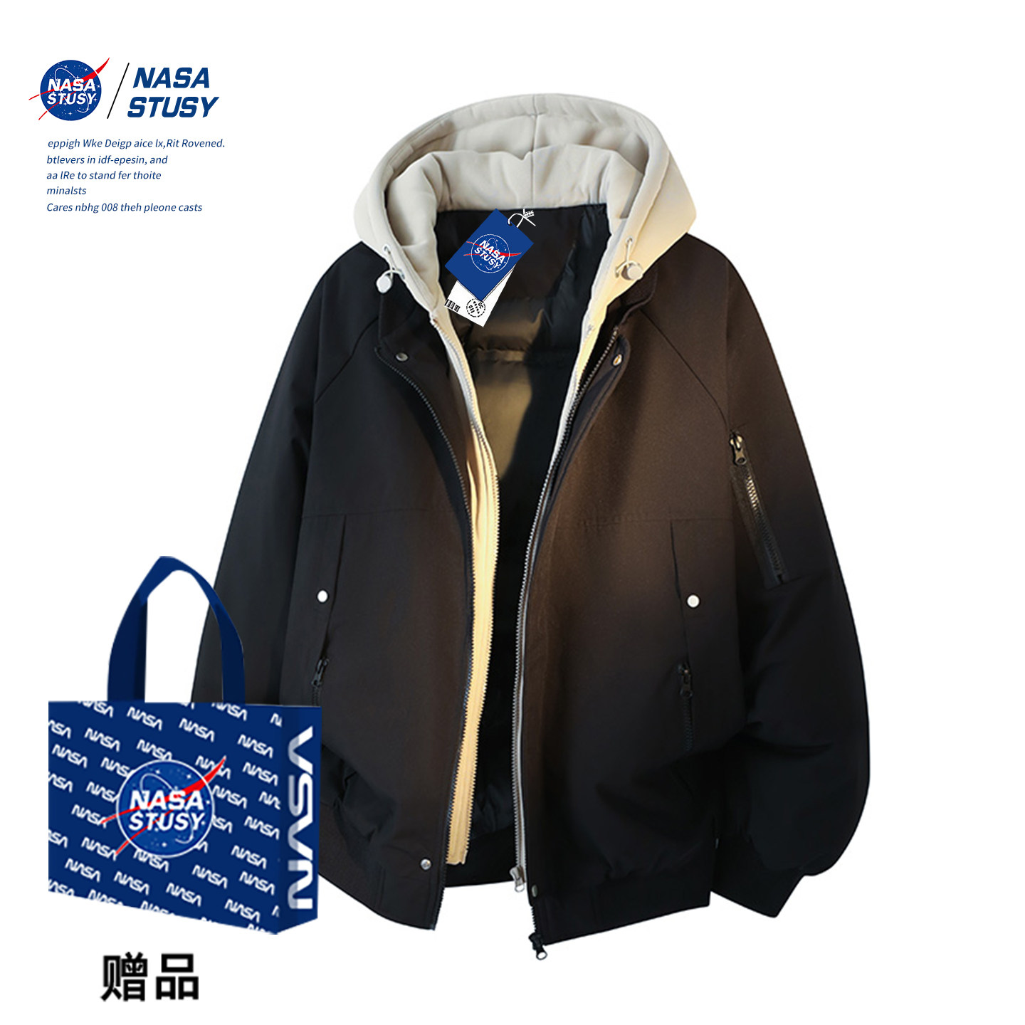 NASA STUSY美式2025冬季加厚保暖假两件棉衣男款棉袄羽绒棉服外套