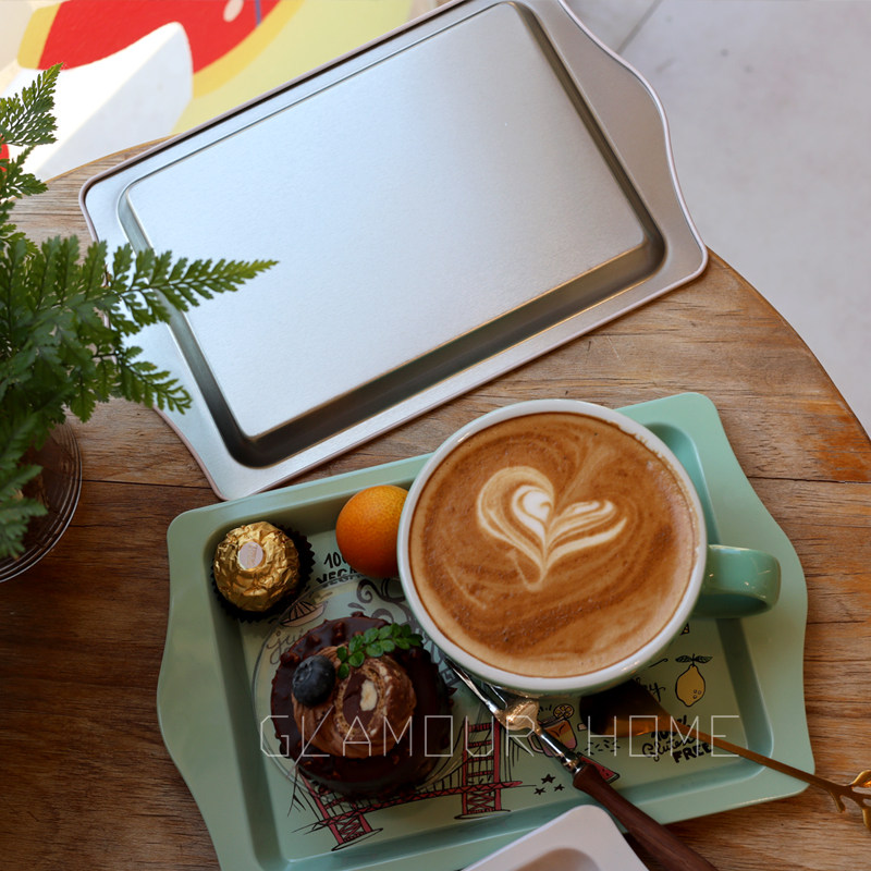 小铁盘蛋糕点心托盘甜品台展示摆件糖果零食摆放水果盘子咖啡托盘