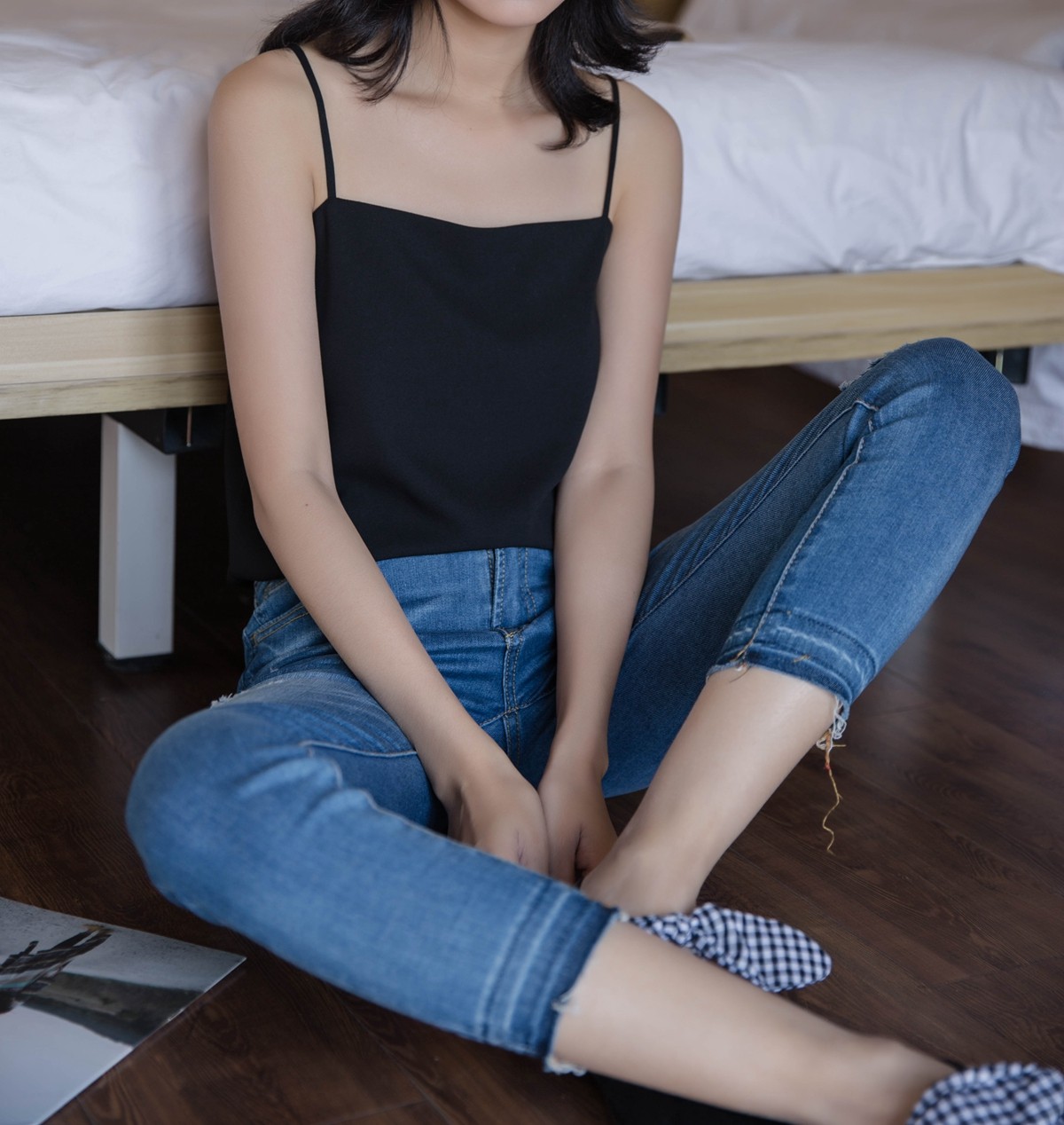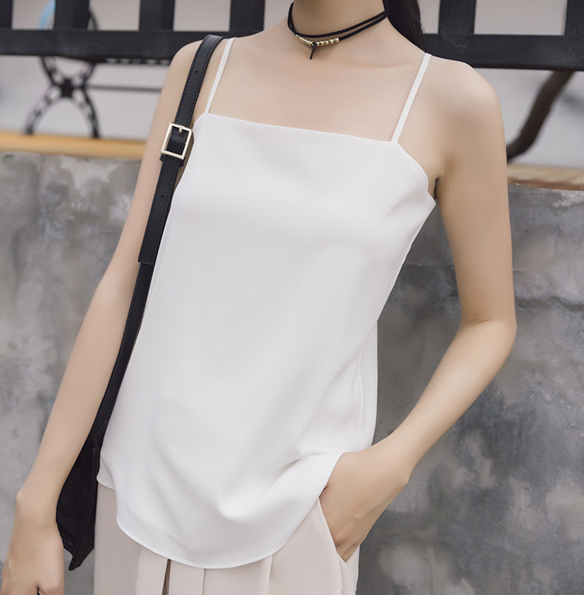 春夏外穿一字雪纺吊带宽松内搭双层复古平口小背心无袖打底小衫女