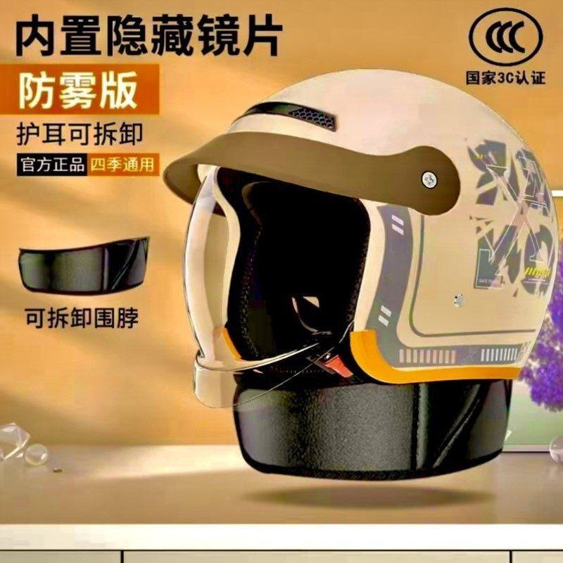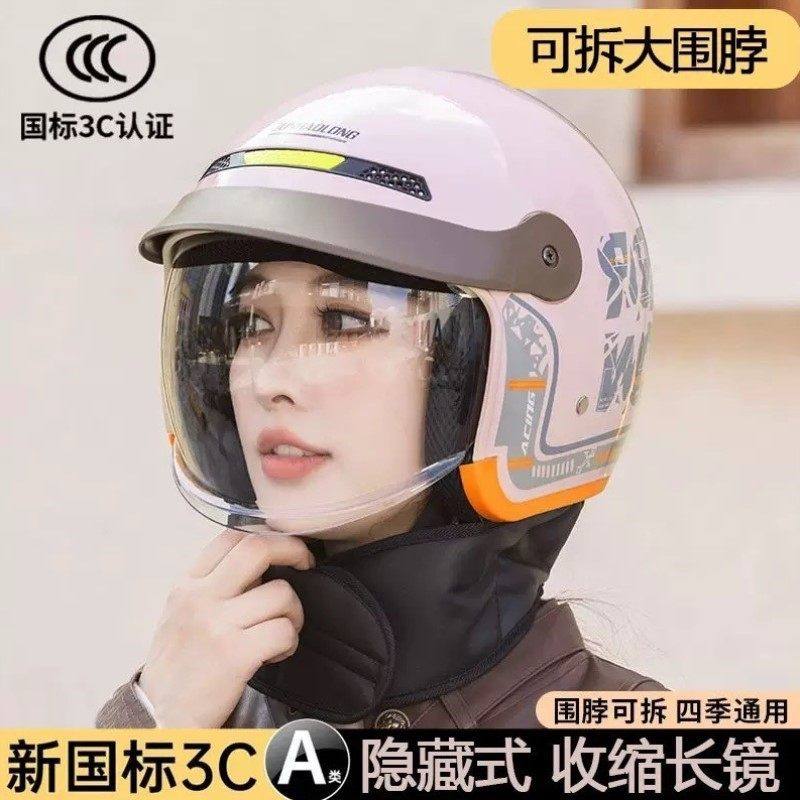 头盔女电动车冬不压头发女士新款镜片冬季保暖隐藏电动