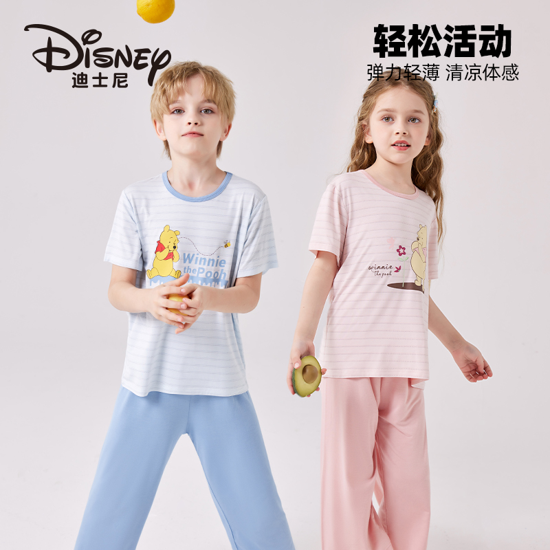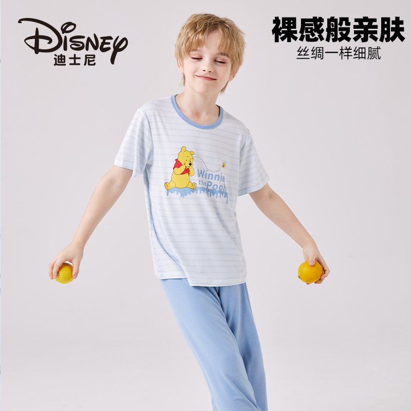 迪士尼儿童睡衣莫代尔春夏男童大童冰丝薄款短袖睡裤套装家居服