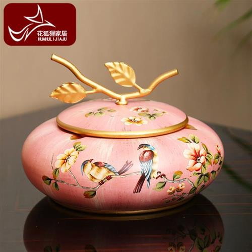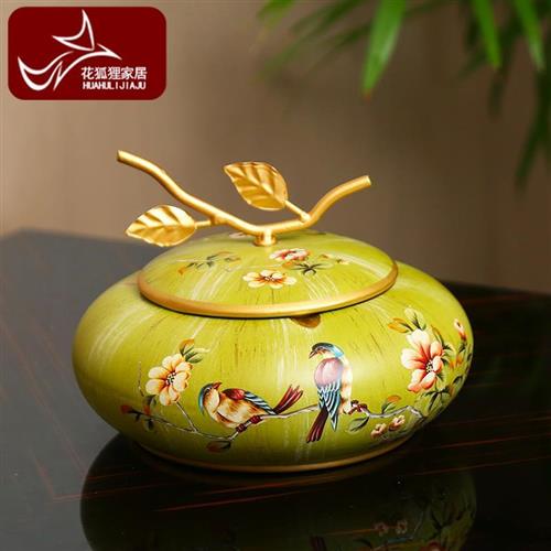 美式乡村带盖子彩绘n烟灰缸创意陶瓷欧式客厅茶几复古收纳盒装饰