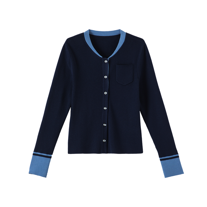 晚白高弹亲肤圆领针织开衫
