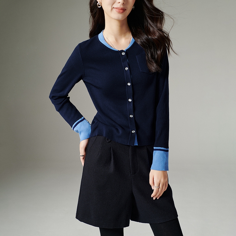 晚白2025年秋新款气质百搭上衣时尚修身圆领亲肤针织开衫女