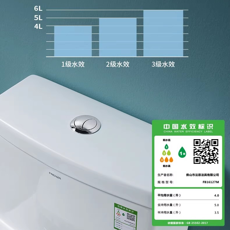 法恩莎马桶家用卫生间虹吸喷射静音节水大冲力陶瓷坐便器FB16127