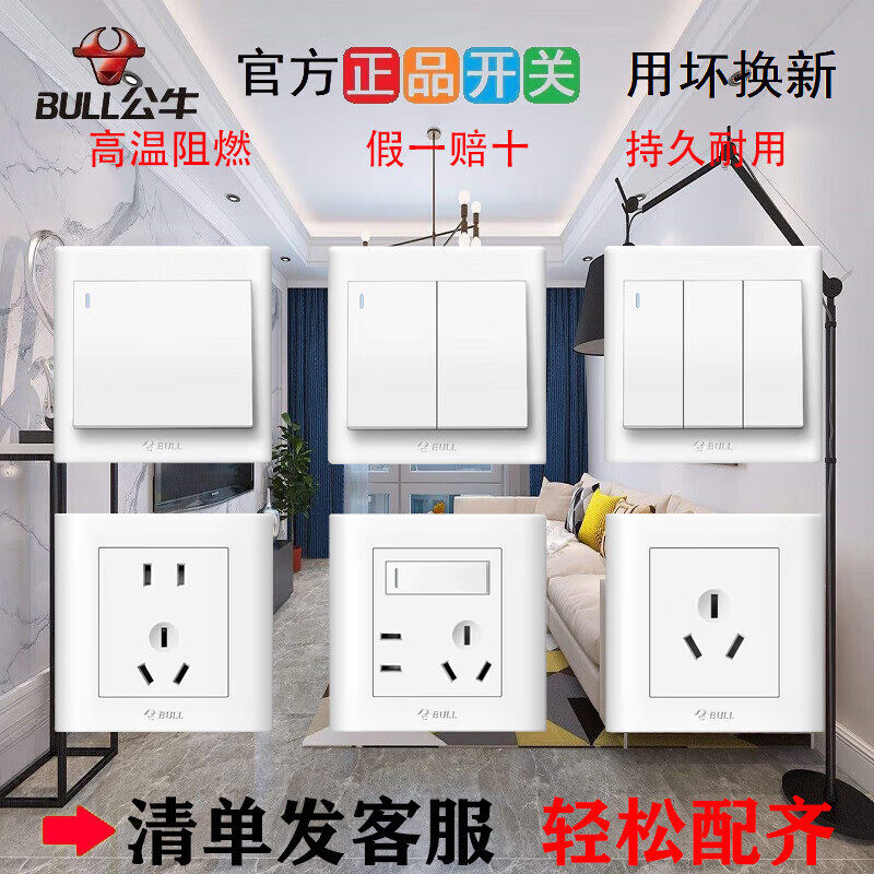 公牛86型G32暗装五孔10A家用大间距5孔插座面板墙壁二三插白色双