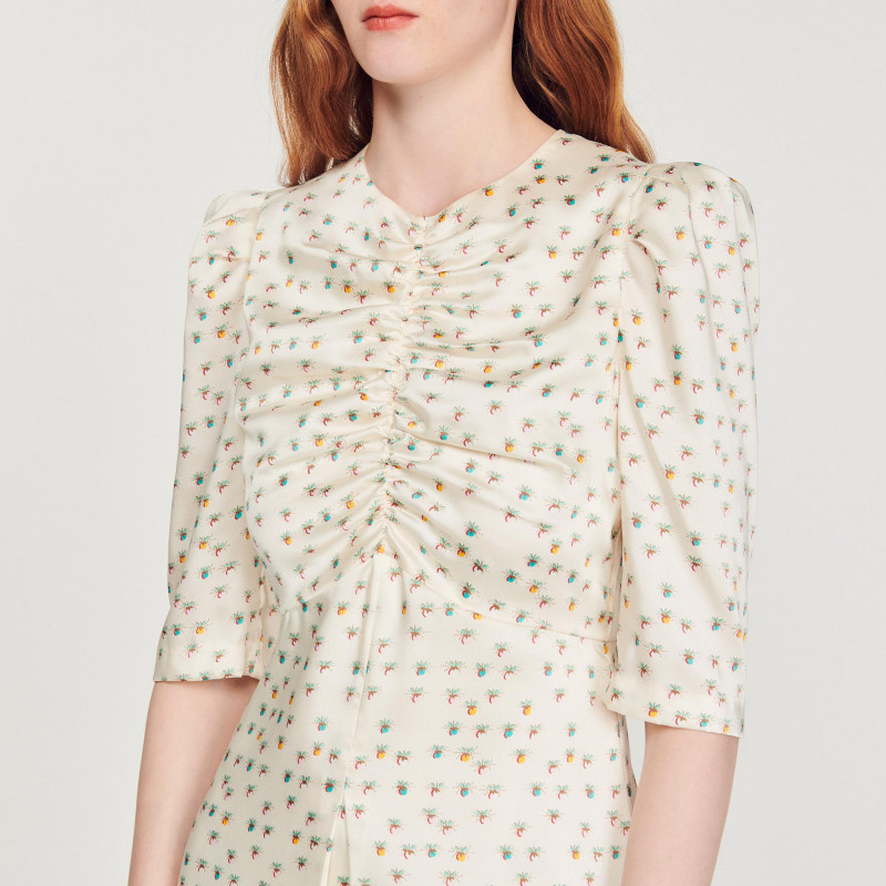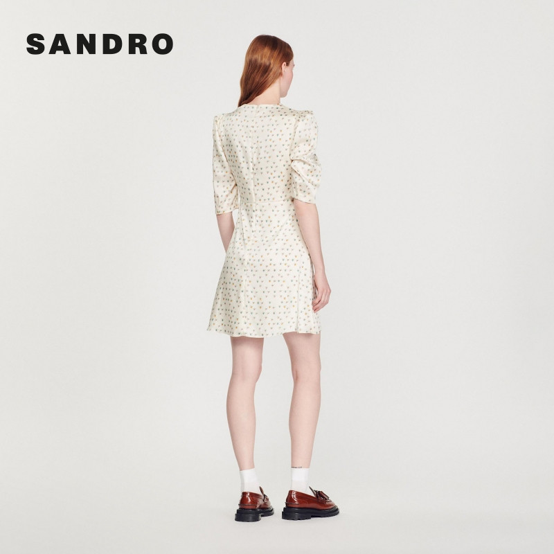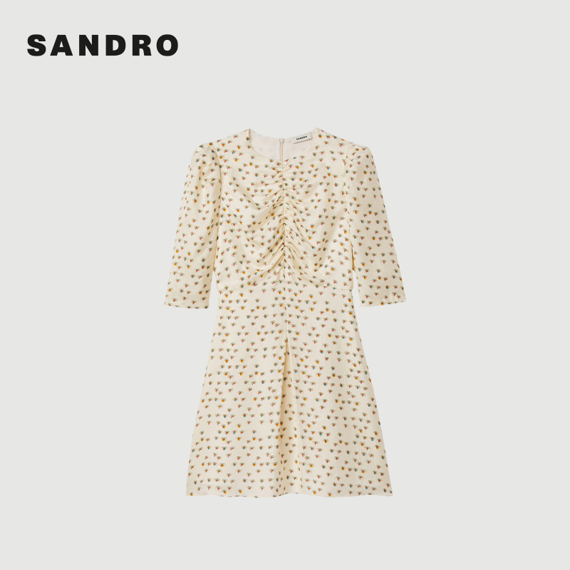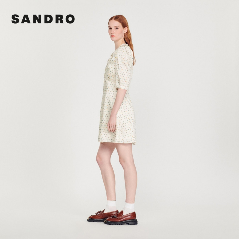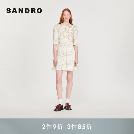 SANDRO Outlets春夏女装法式时尚优雅浪漫碎花印花短款A字连衣裙