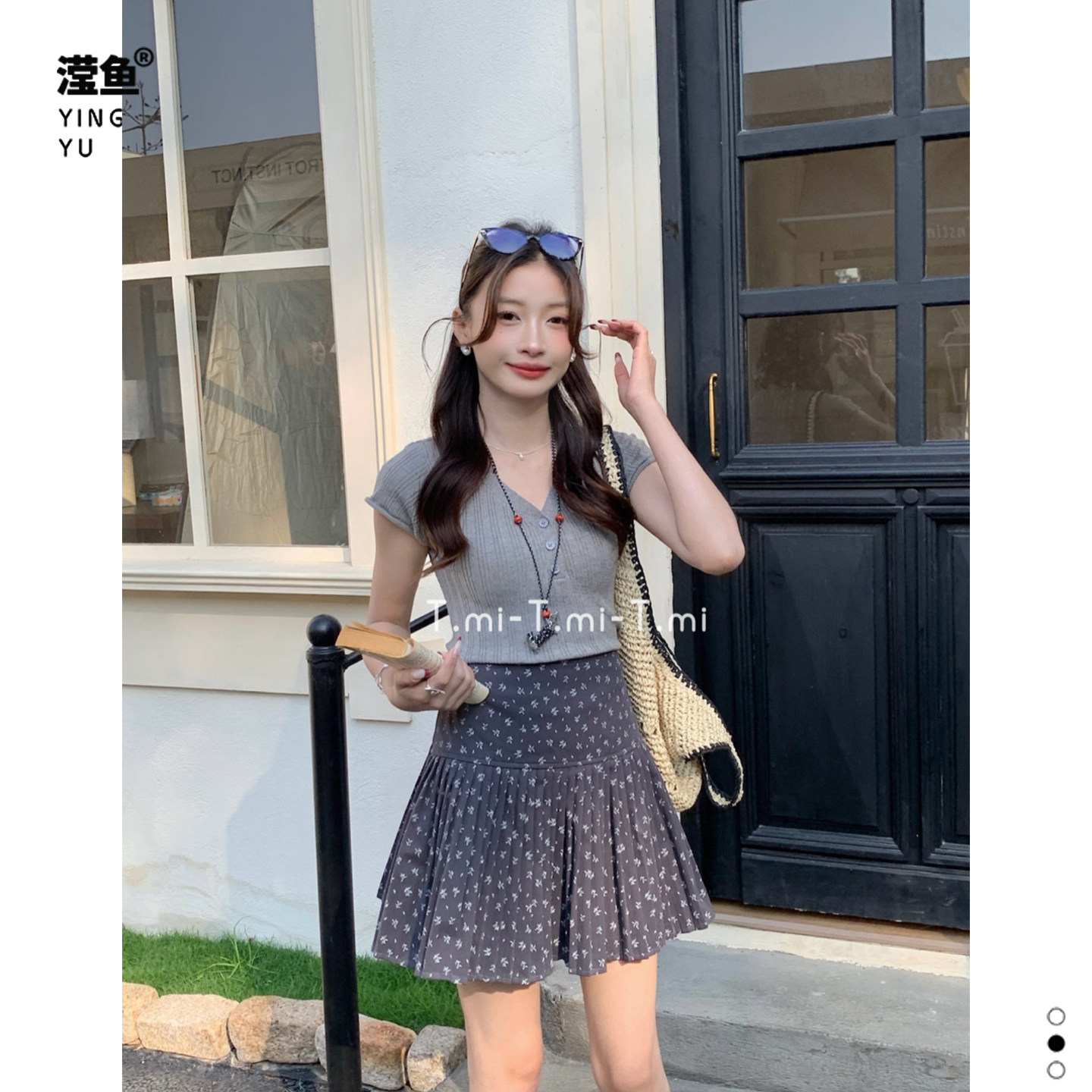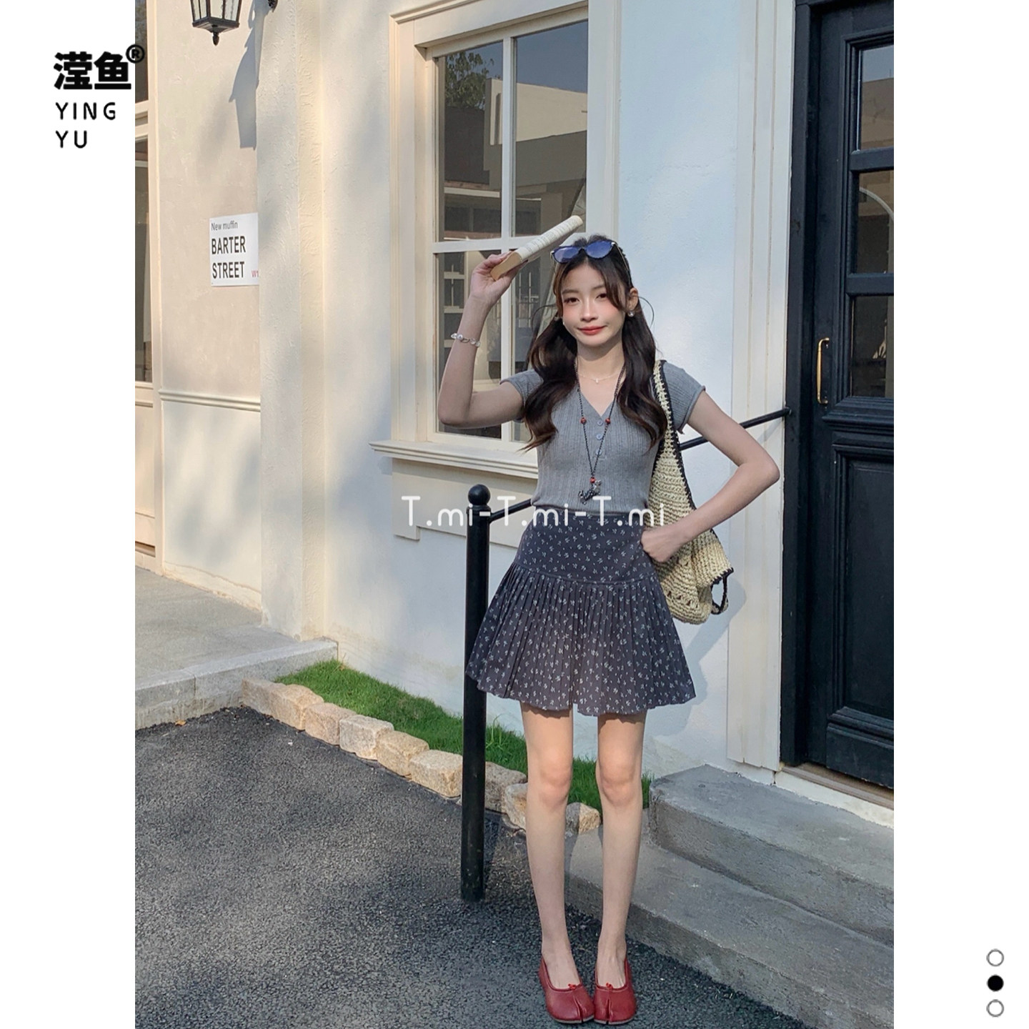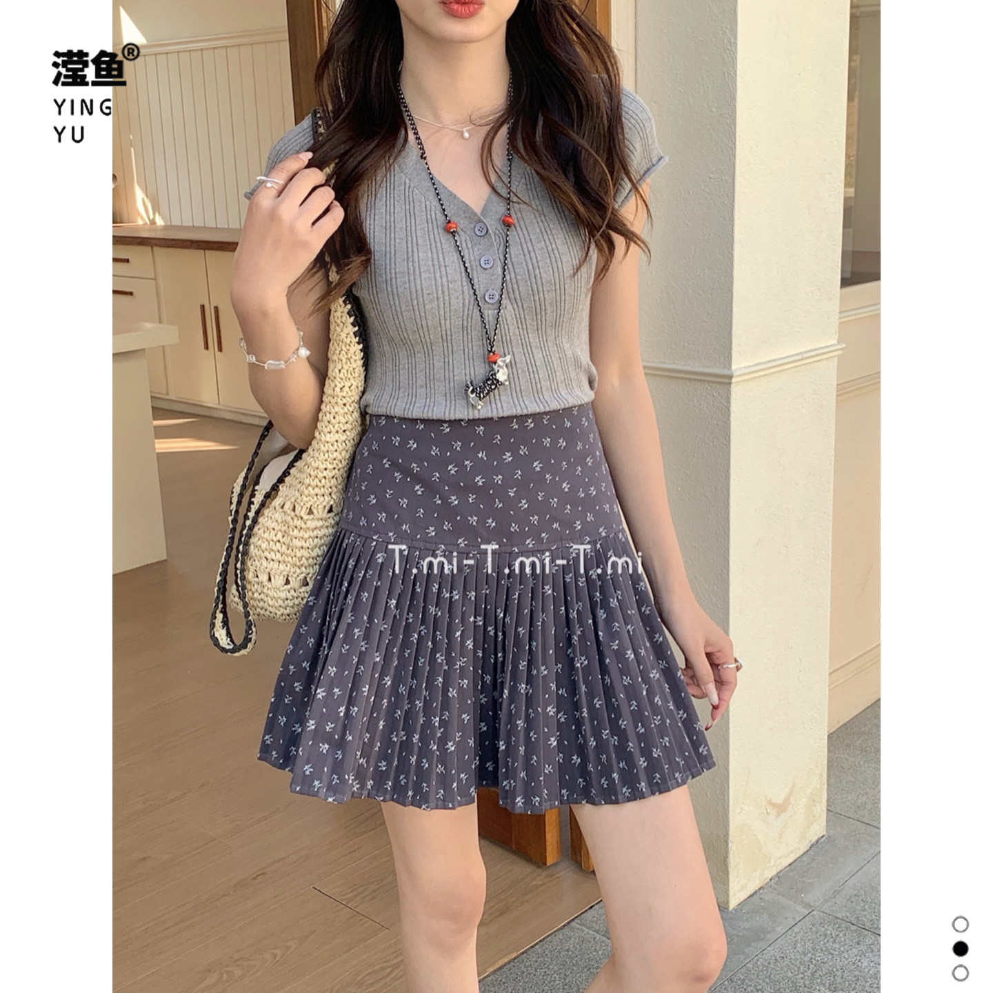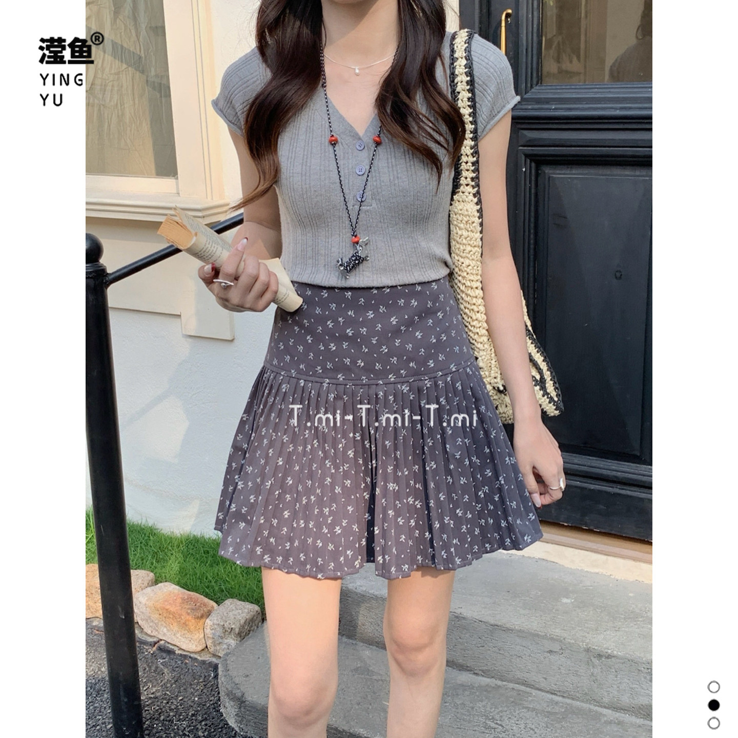 Tmi 261060大码学院风碎花百褶半身裙女夏季显瘦时尚洋气A字短裙