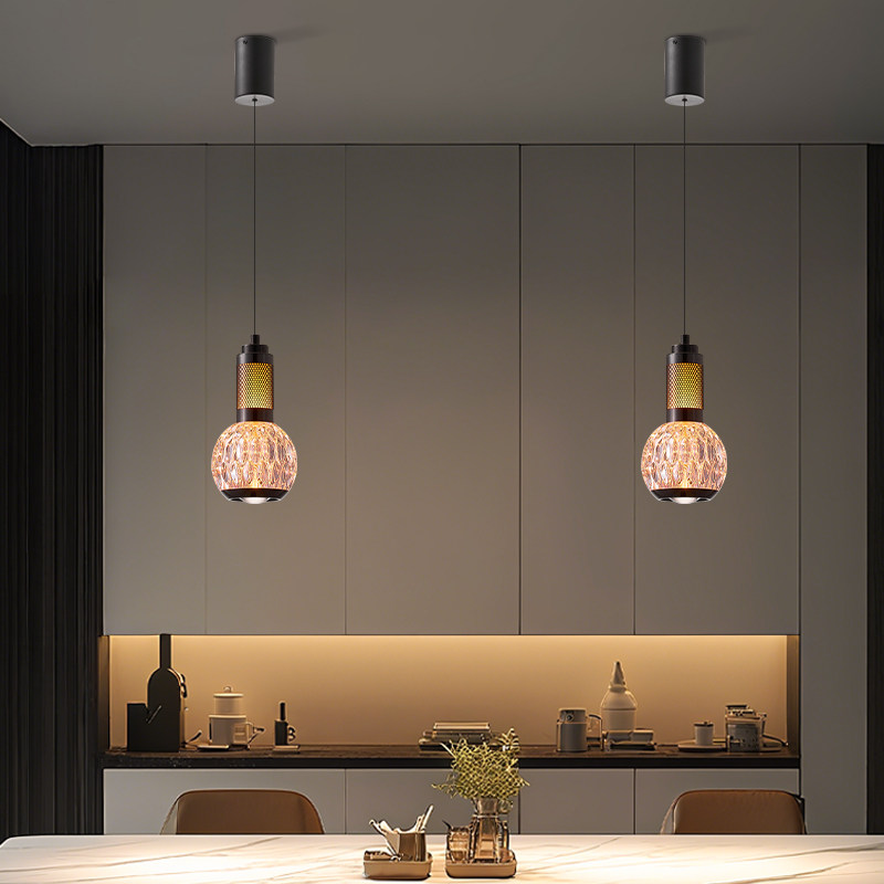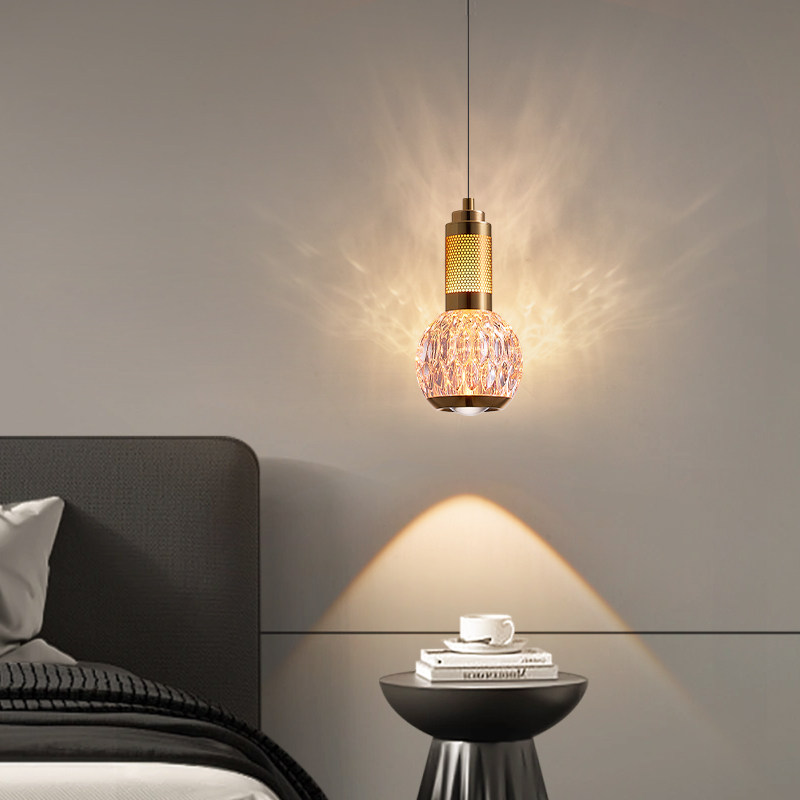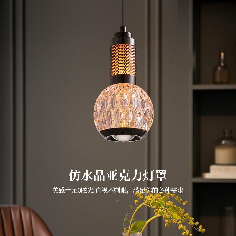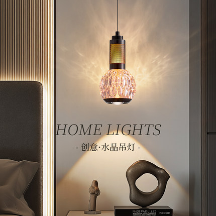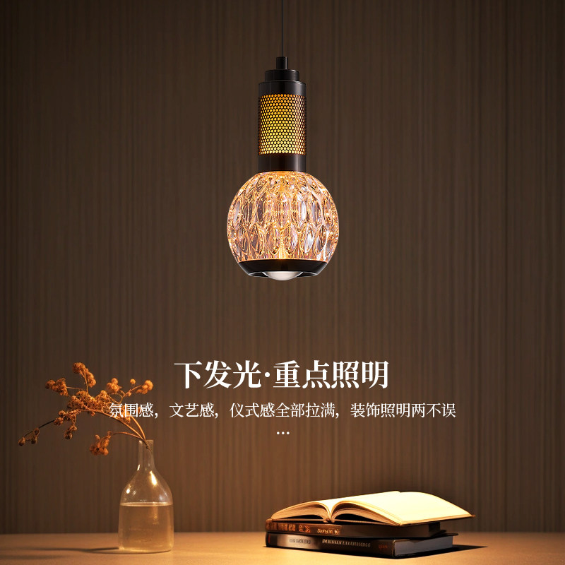 复古风卧室床头吊线灯意式极简氛围高级感轻奢水晶餐厅可升降吊灯