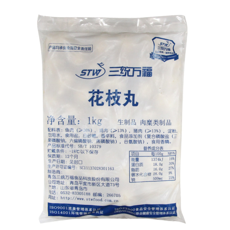 三统万福花枝丸油炸墨鱼丸1kg/包50个鱼丸鱼蛋油炸小吃油炸丸子