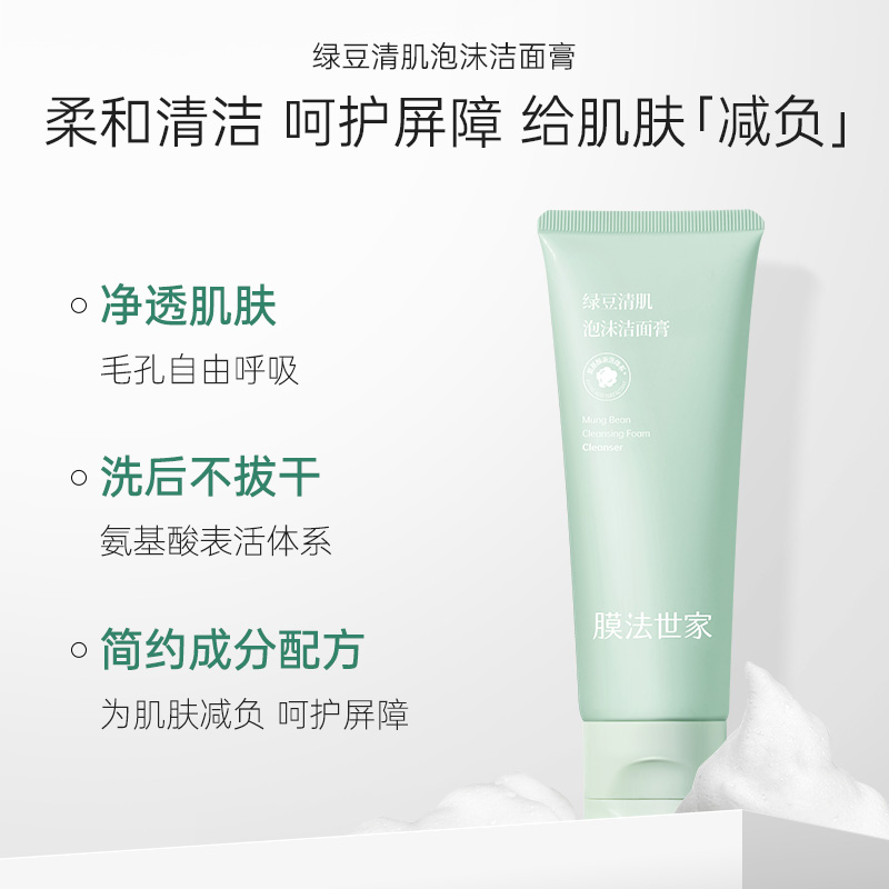膜法世家绿豆氨基酸泡沫洗面奶清洁毛孔控油洁面乳男士女专用正品