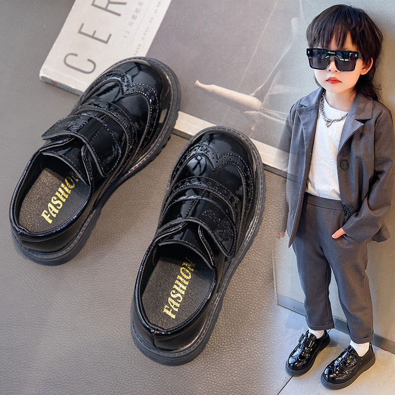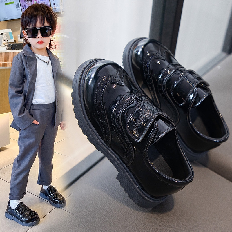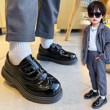 男童黑色校园演出软底小皮鞋