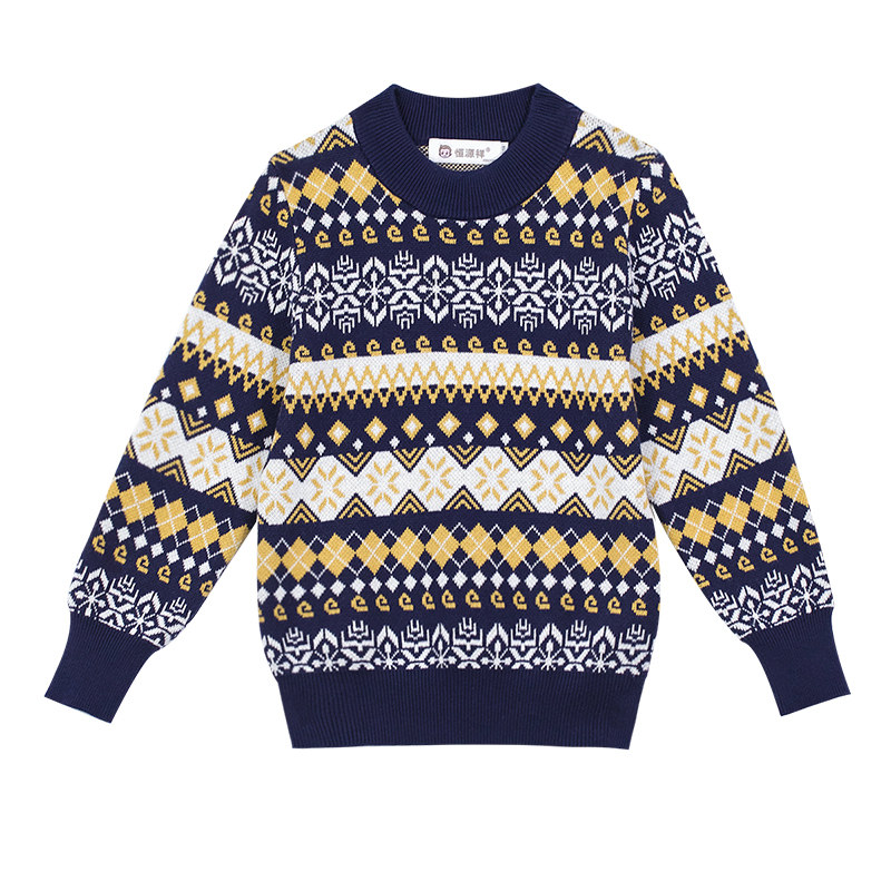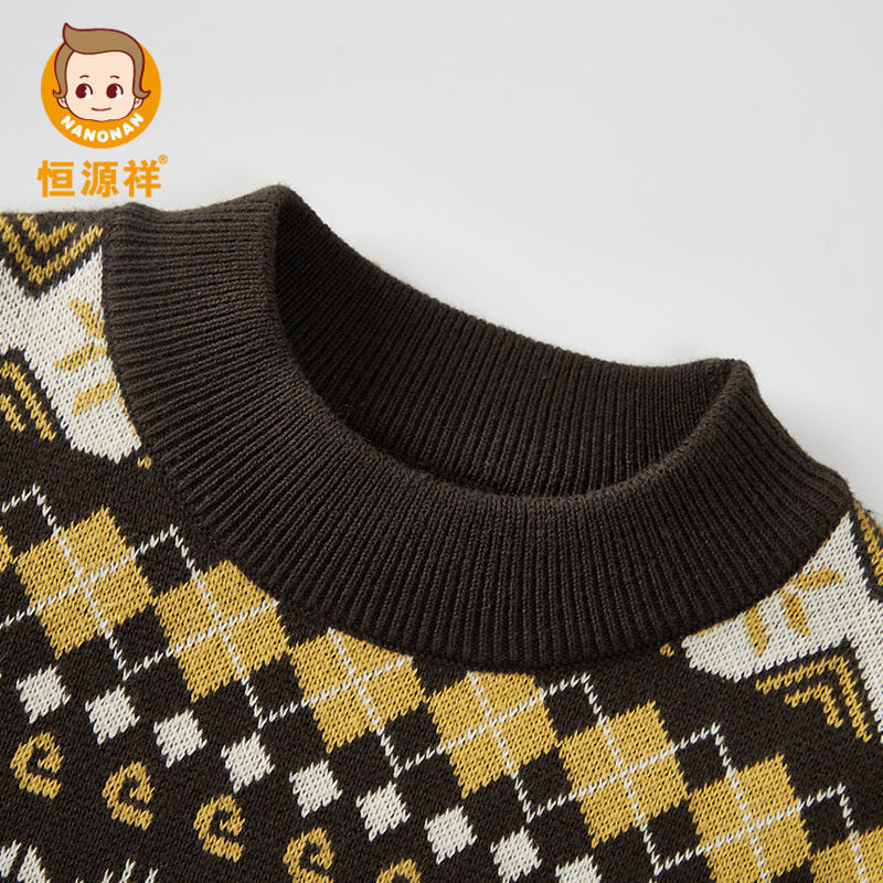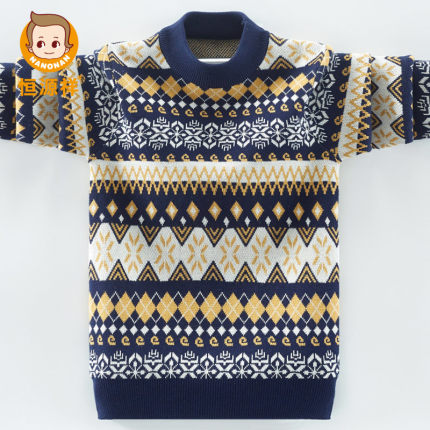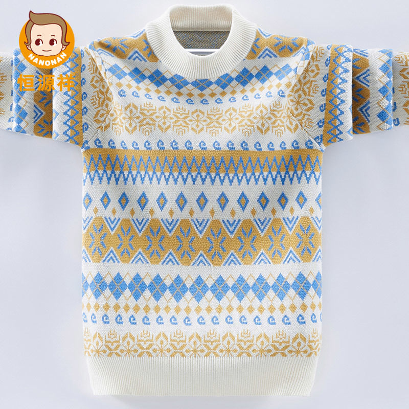 恒源祥中大童针织衫毛衣加绒加厚男童套头秋冬洋气印花儿童打底衫