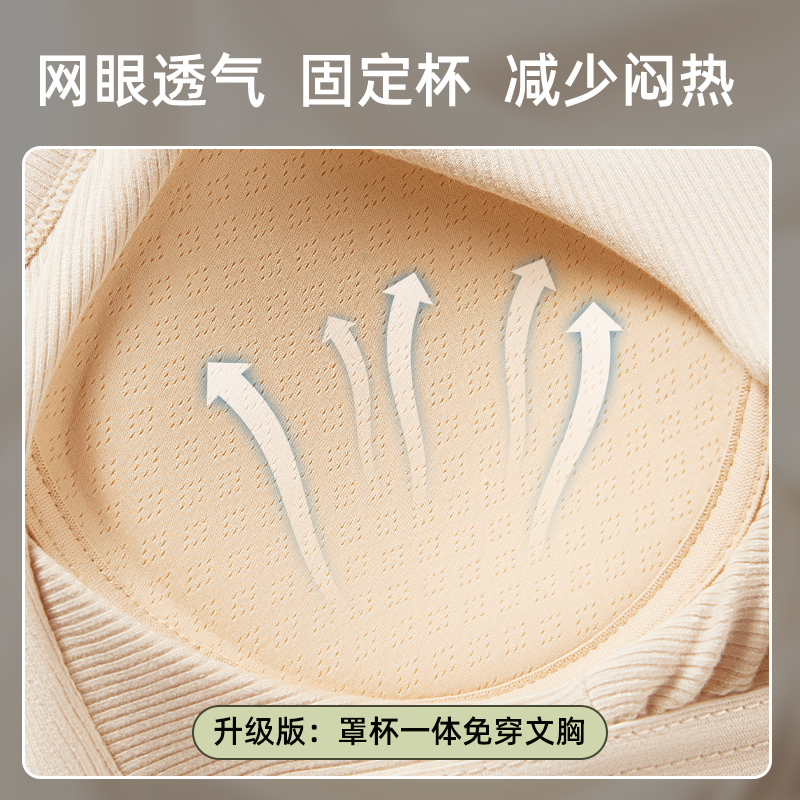 女士螺纹背心带胸垫一体式免穿文胸遮副乳打底衫上衣2025新款内搭