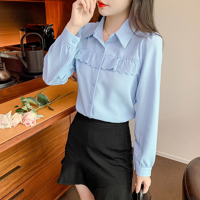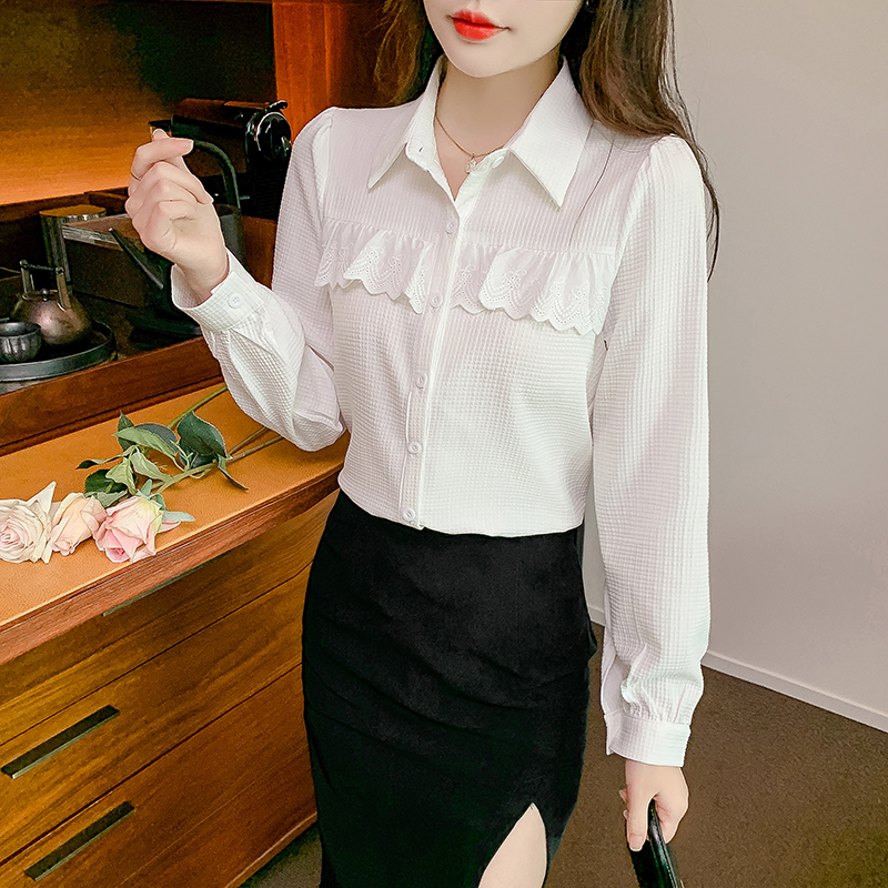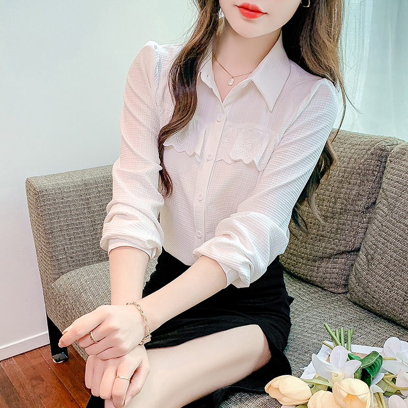 实拍2025年春秋季新款时尚雪纺衬衫长袖蕾丝拼接女士衬衣上衣