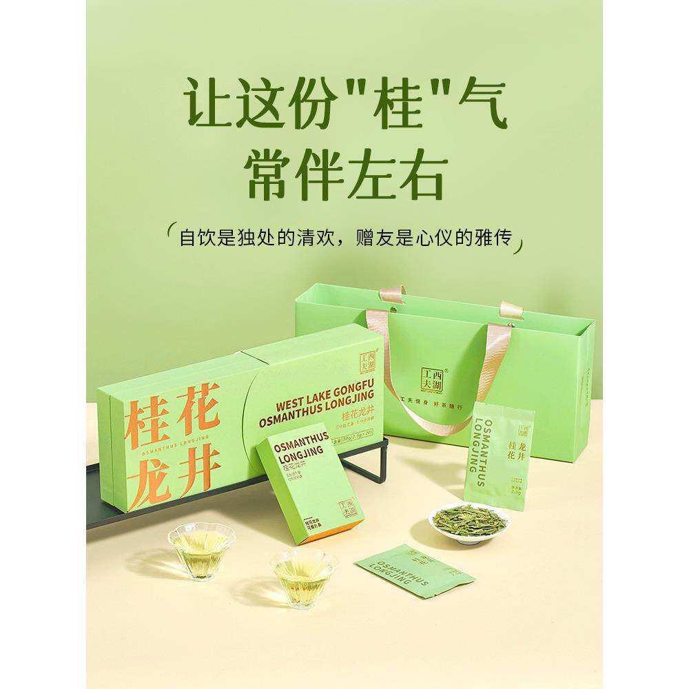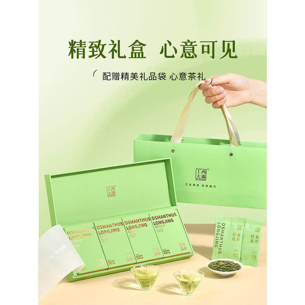 西湖功夫桂花龙井茶礼盒金桂花香明前浓香绿茶杭州特色纪念品