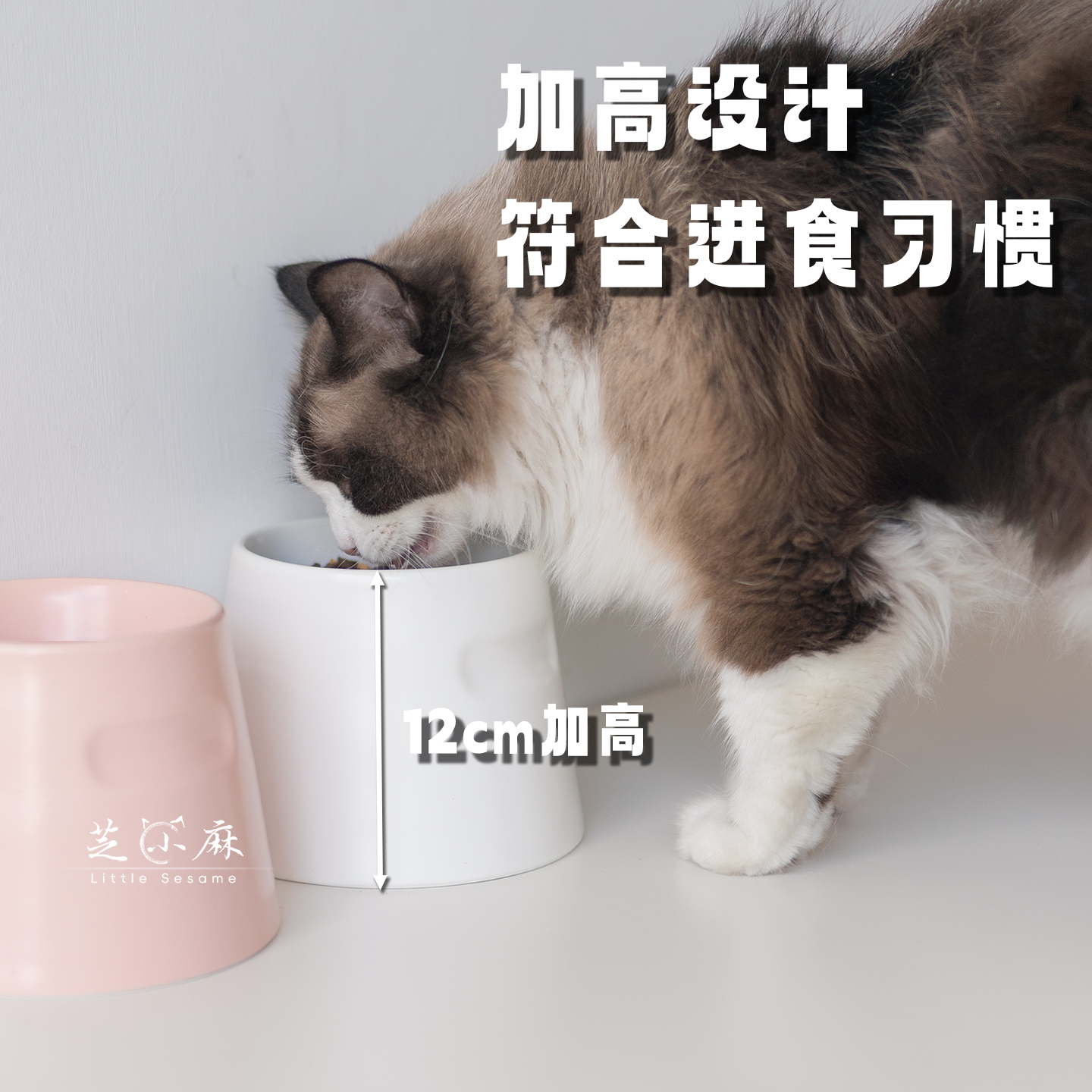芝小麻小众设计宠物陶瓷碗釉下彩高脚猫碗狗碗保护颈椎防打翻粮碗