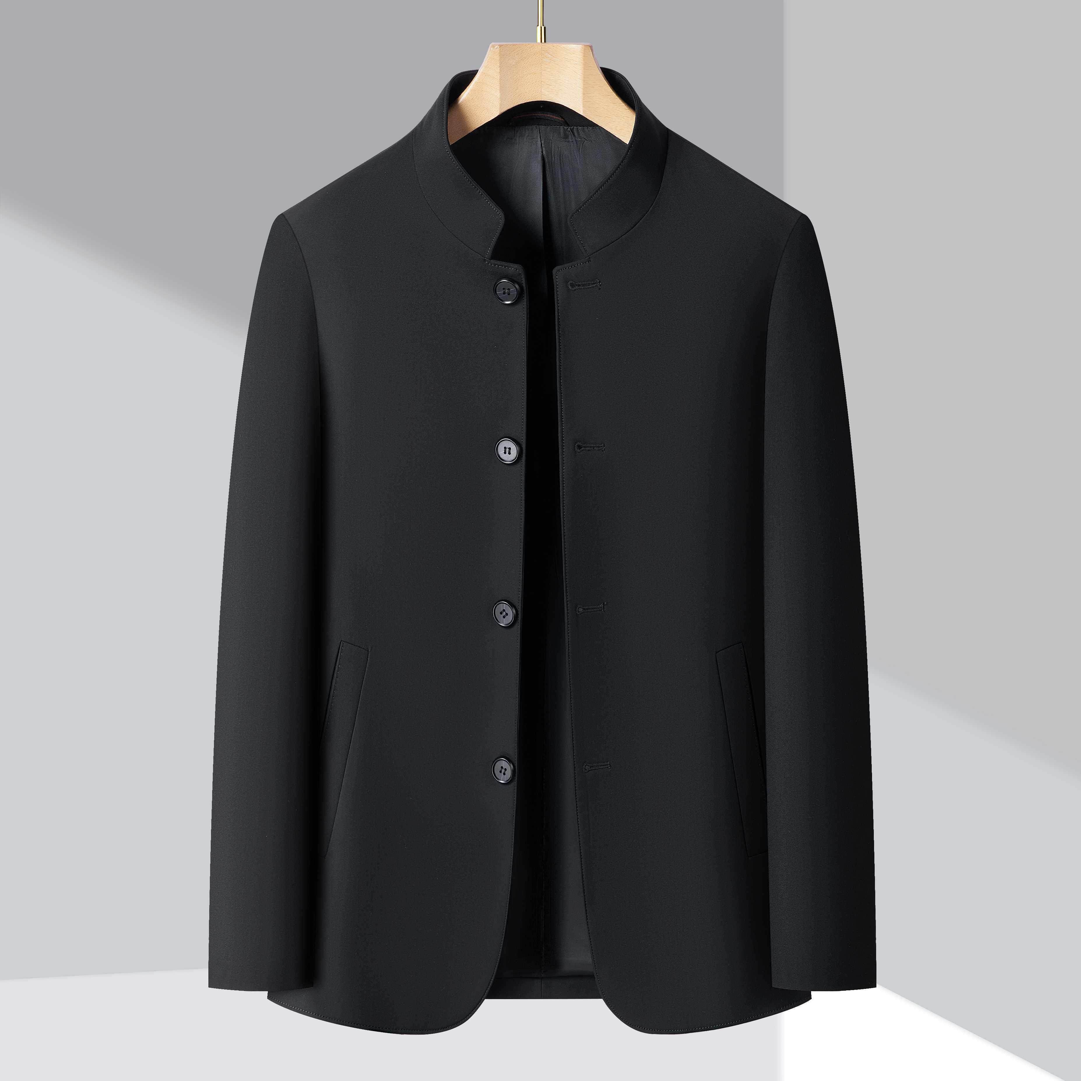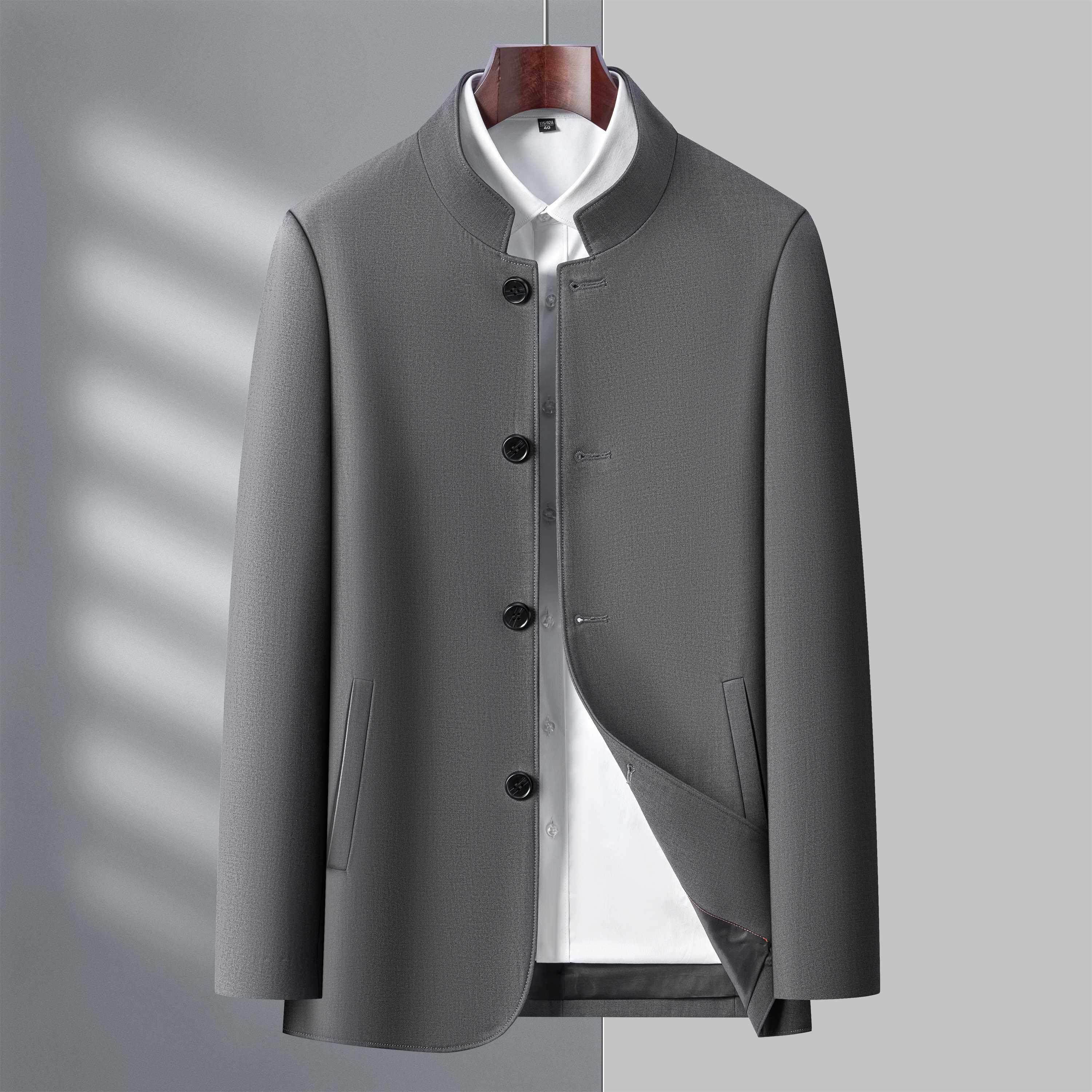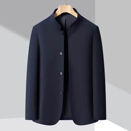 鄂尔多斯市产高档夹克男2025秋冬新款中老年爸爸装休闲中山装外套