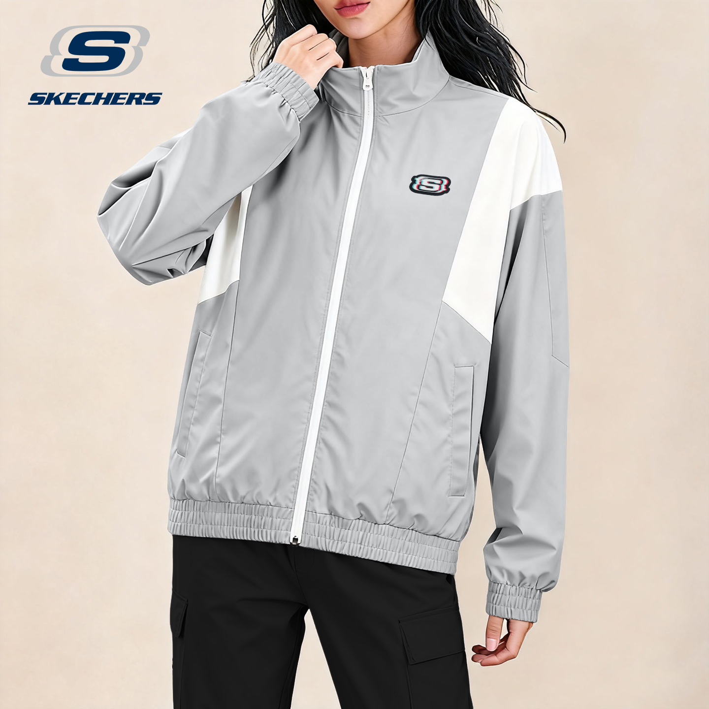 斯凯奇外套女士缤纷系列新款宽松休闲上衣运动服防泼水外套登山服
