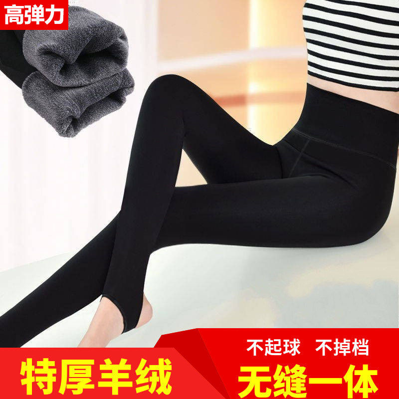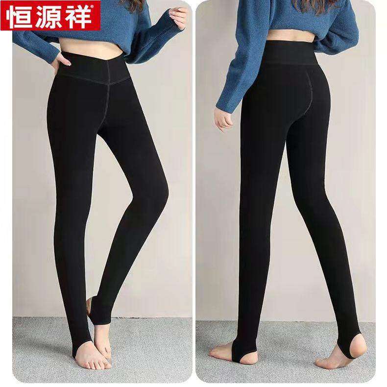 鄂尔多斯市秋冬羊绒裤女加绒厚高腰踩脚一体无缝保暖羊毛打底外穿