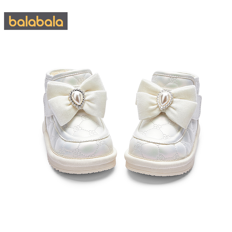 巴拉巴拉女童雪地靴宝宝加绒短靴冬季新款童鞋婴儿白色鞋子棉靴小
