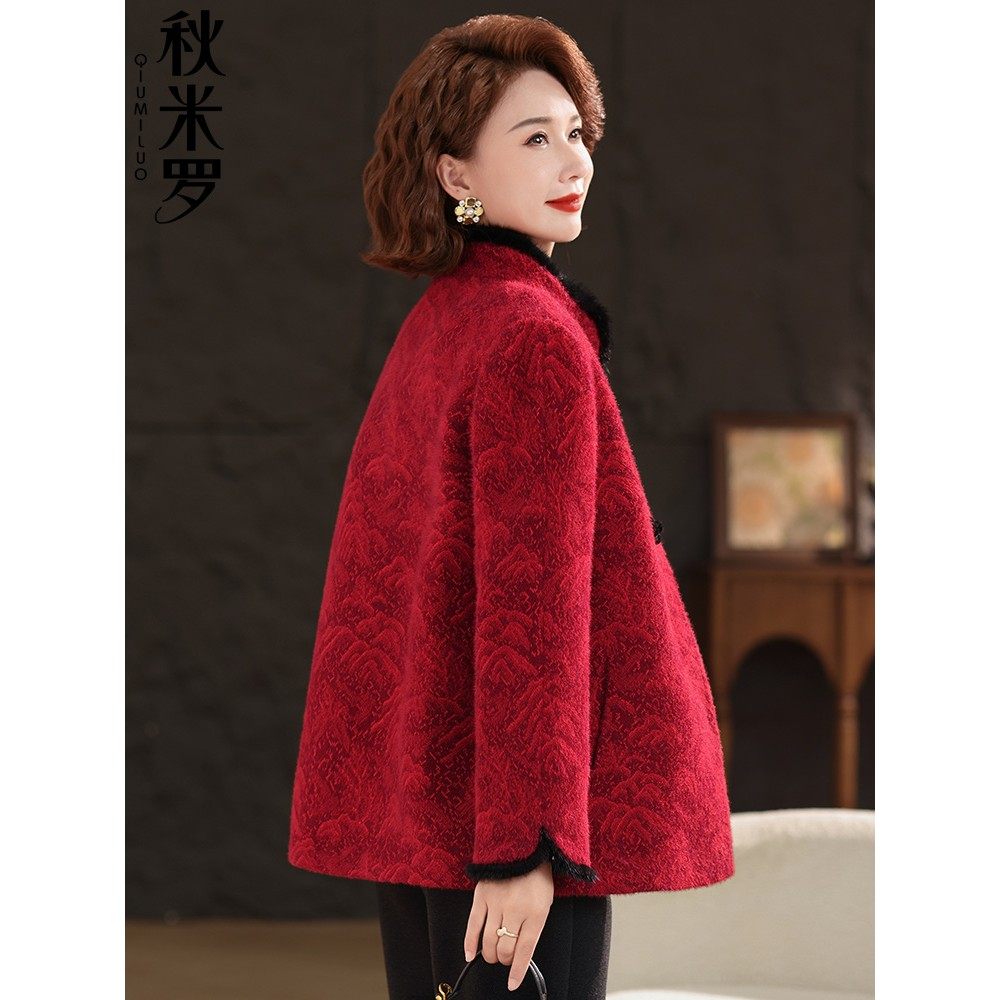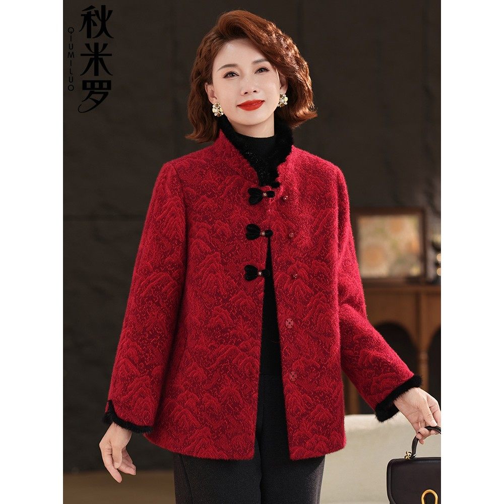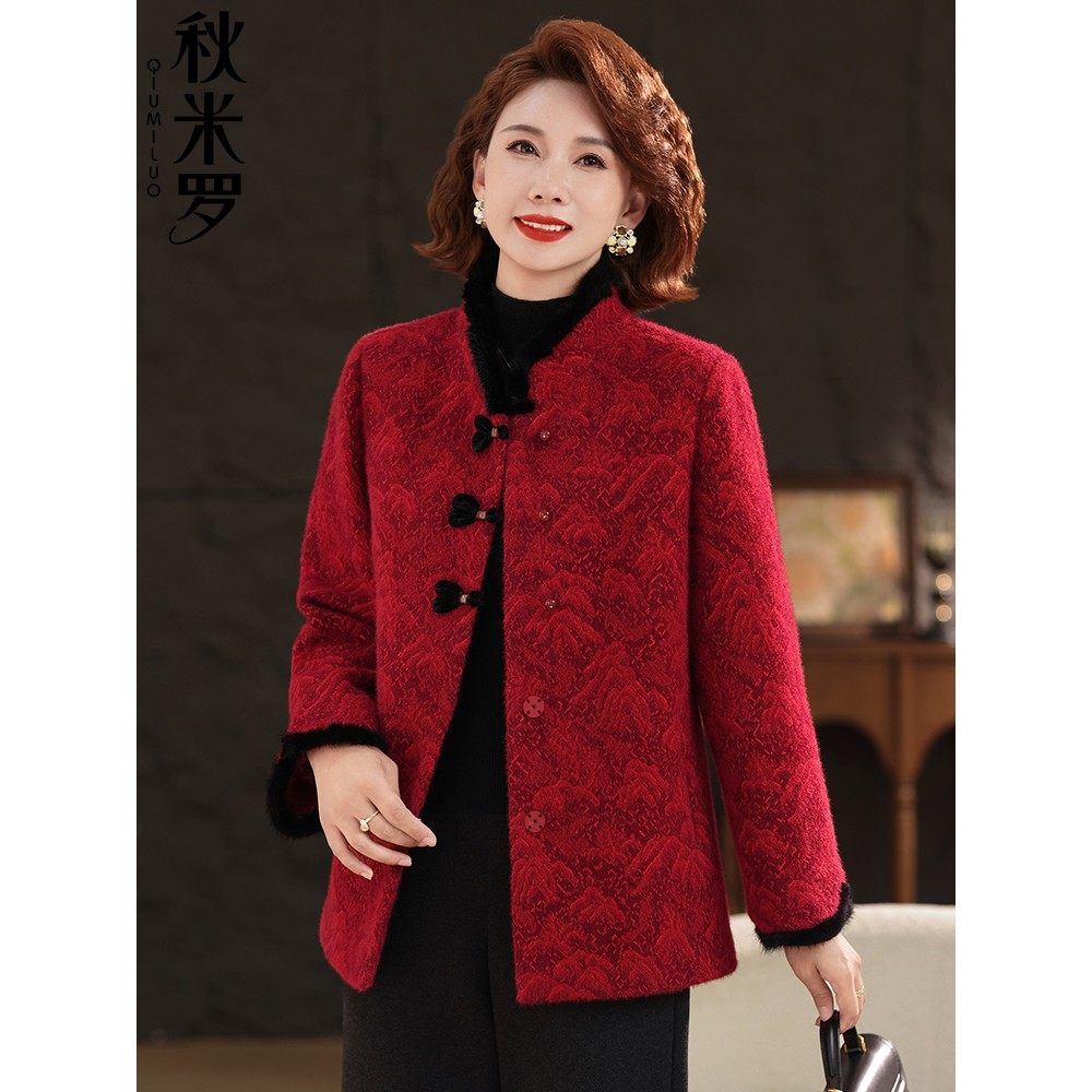 喜婆婆婚宴礼服贵夫人2025秋冬季新款妈妈唐装中老年女装毛呢外套