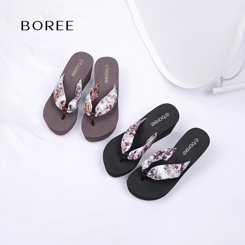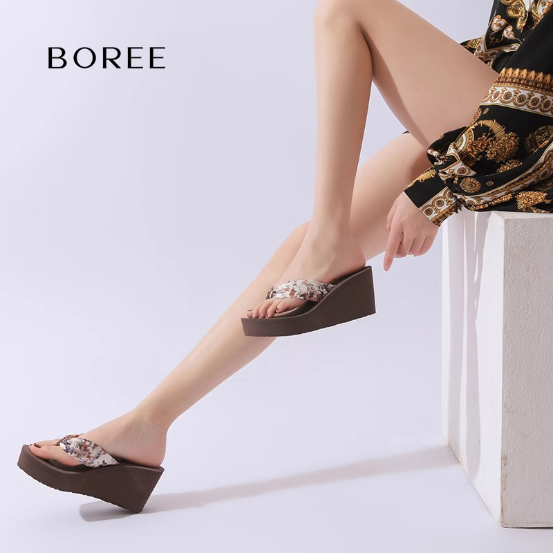 宝人Boree拖鞋女夏2025新款人字拖外穿舒适高跟网红坡跟厚底凉拖