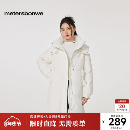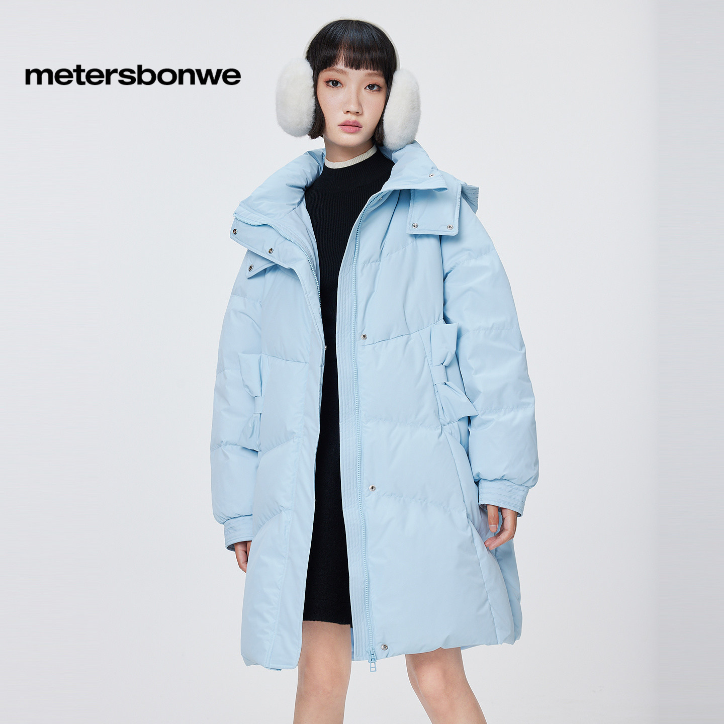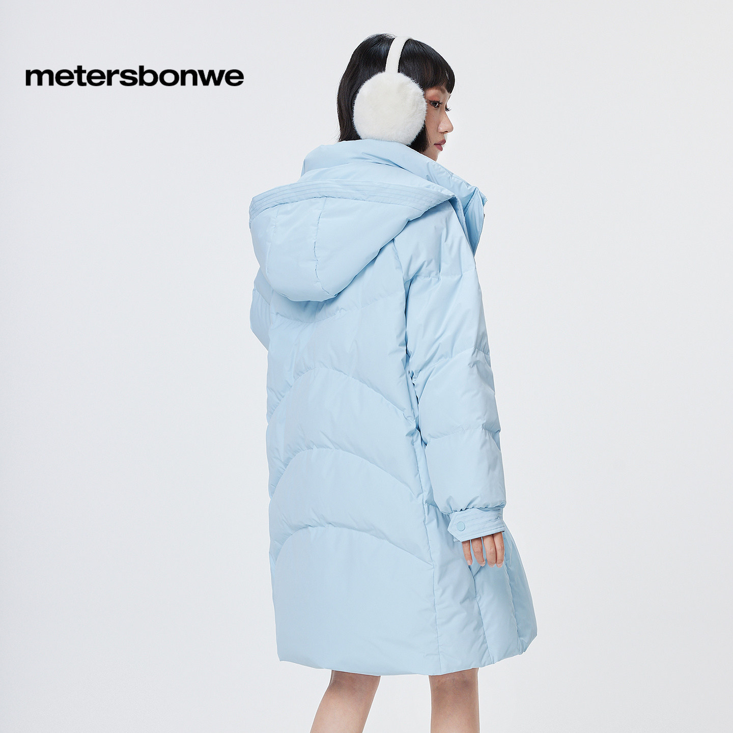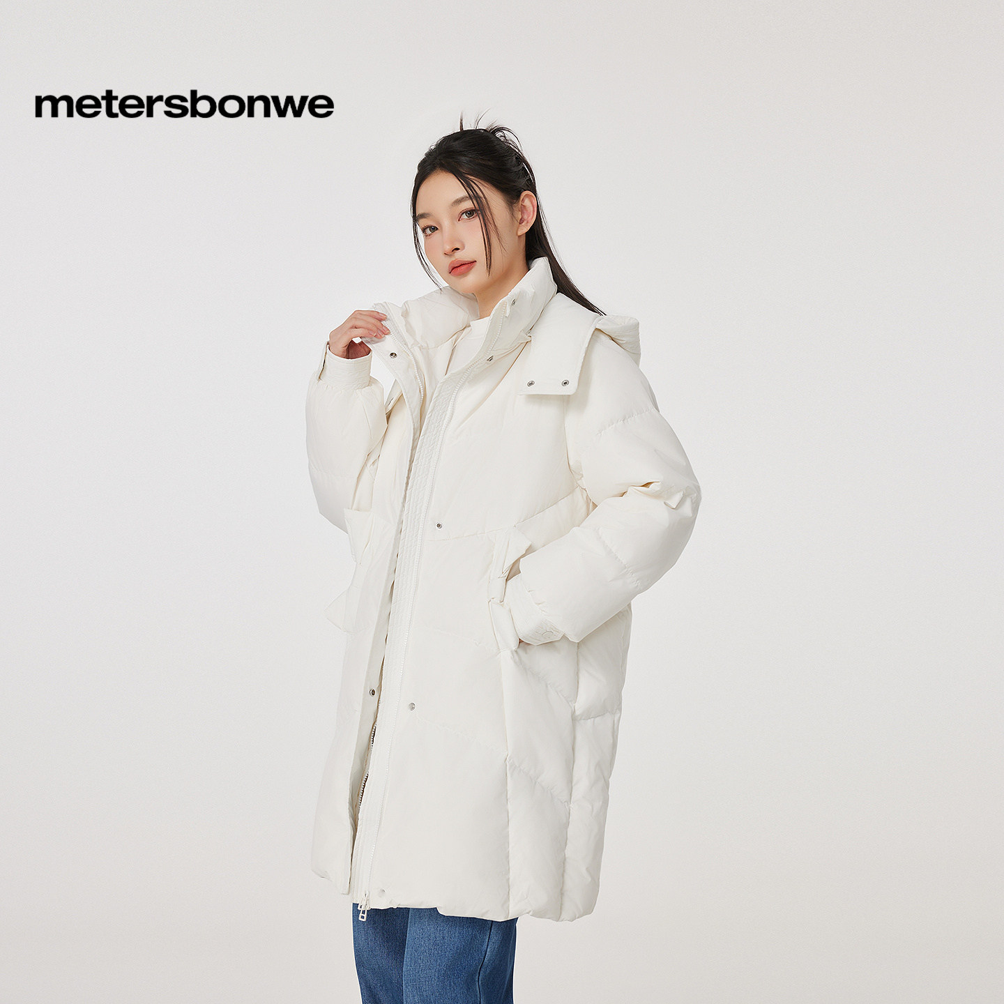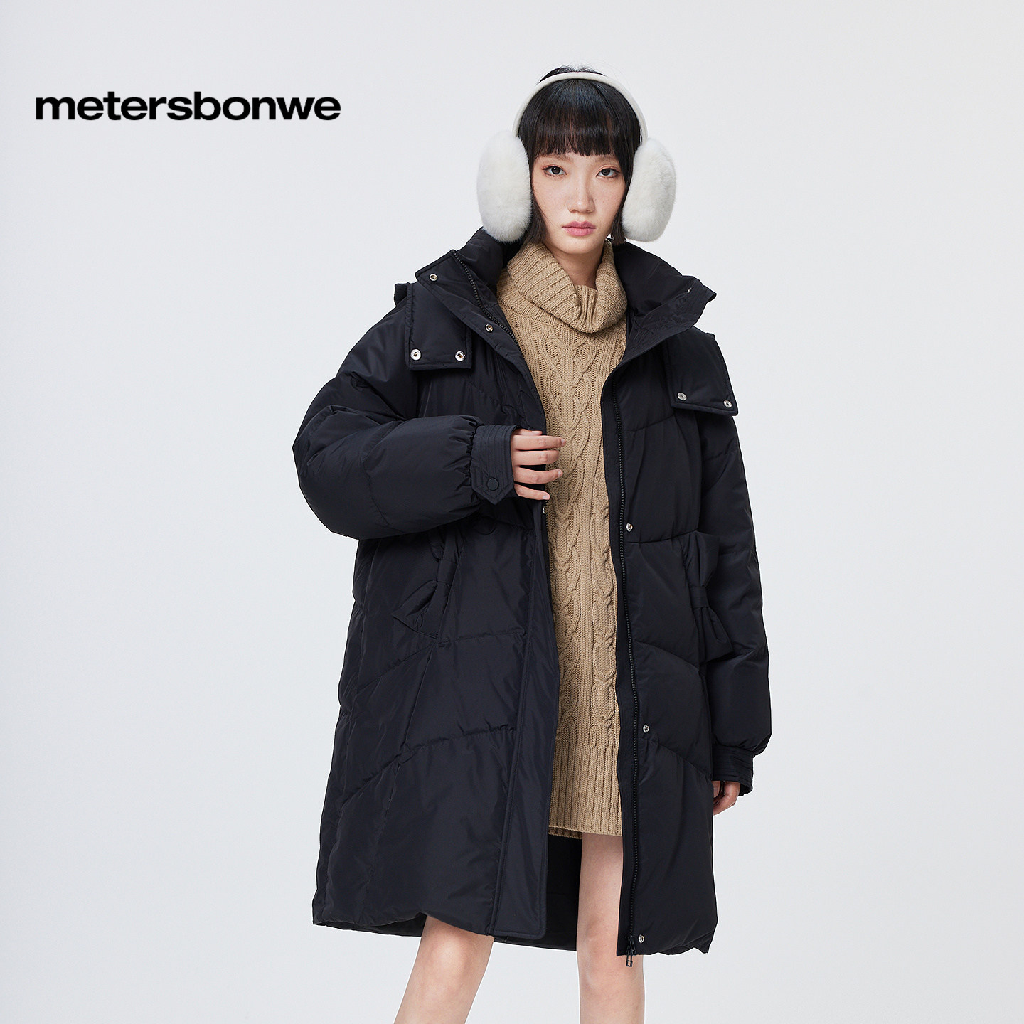 美特斯邦威羽绒服女2023冬季新款时尚中长款插肩简约连帽外套