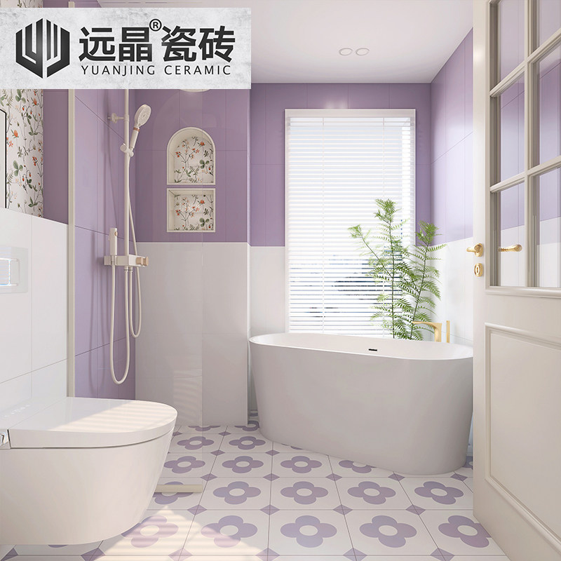 远晶 紫色卫生间花砖浴室墙砖法式瓷砖复古网红阳台地砖柔光厨房