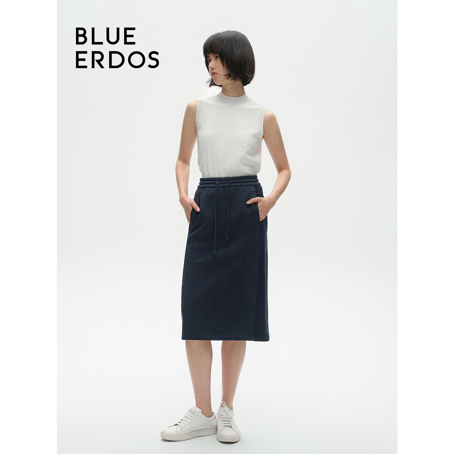 BLUE ERDOS直筒运动风松紧腰纯棉半身裙B246F3003