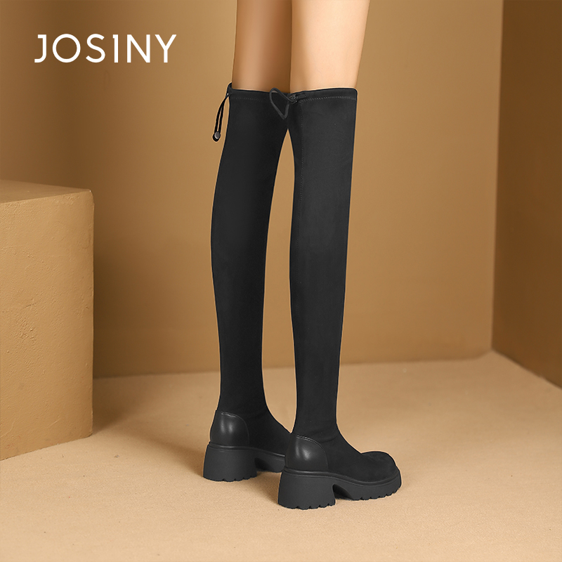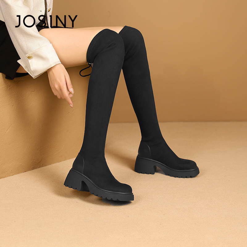 卓诗尼过膝长靴女保暖靴子新款高跟高筒弹力靴真皮厚底显瘦长筒靴