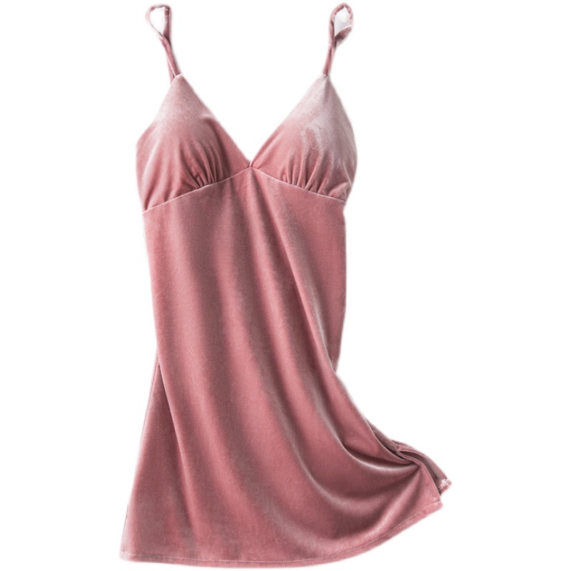 金丝绒性感吊带睡裙带胸垫秋冬款