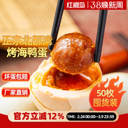 红榄岛烤海鸭蛋特大70克50枚广西北部湾红矮树林正宗流油咸鸭蛋