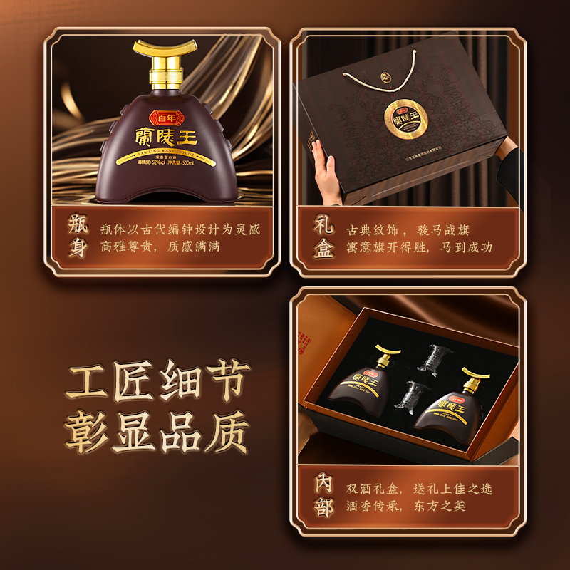 兰陵百年兰陵王52度500ml*2浓香型白酒礼盒装纯粮酒官方旗舰店