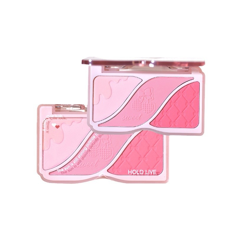 HOLD LIVE小情绪三色腮红修容一体盘哑光膨胀收缩杏粉色腮红HL750