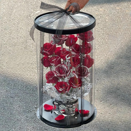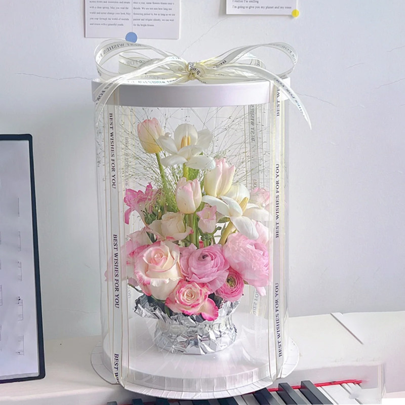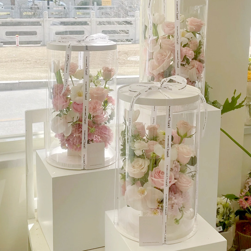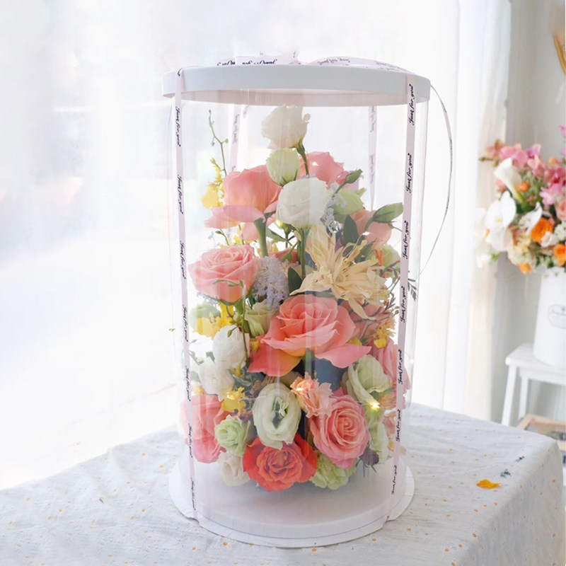 圆形鲜花插花盒透明开窗蛋糕盒手工diy材料包装盒方形PVC全景礼盒