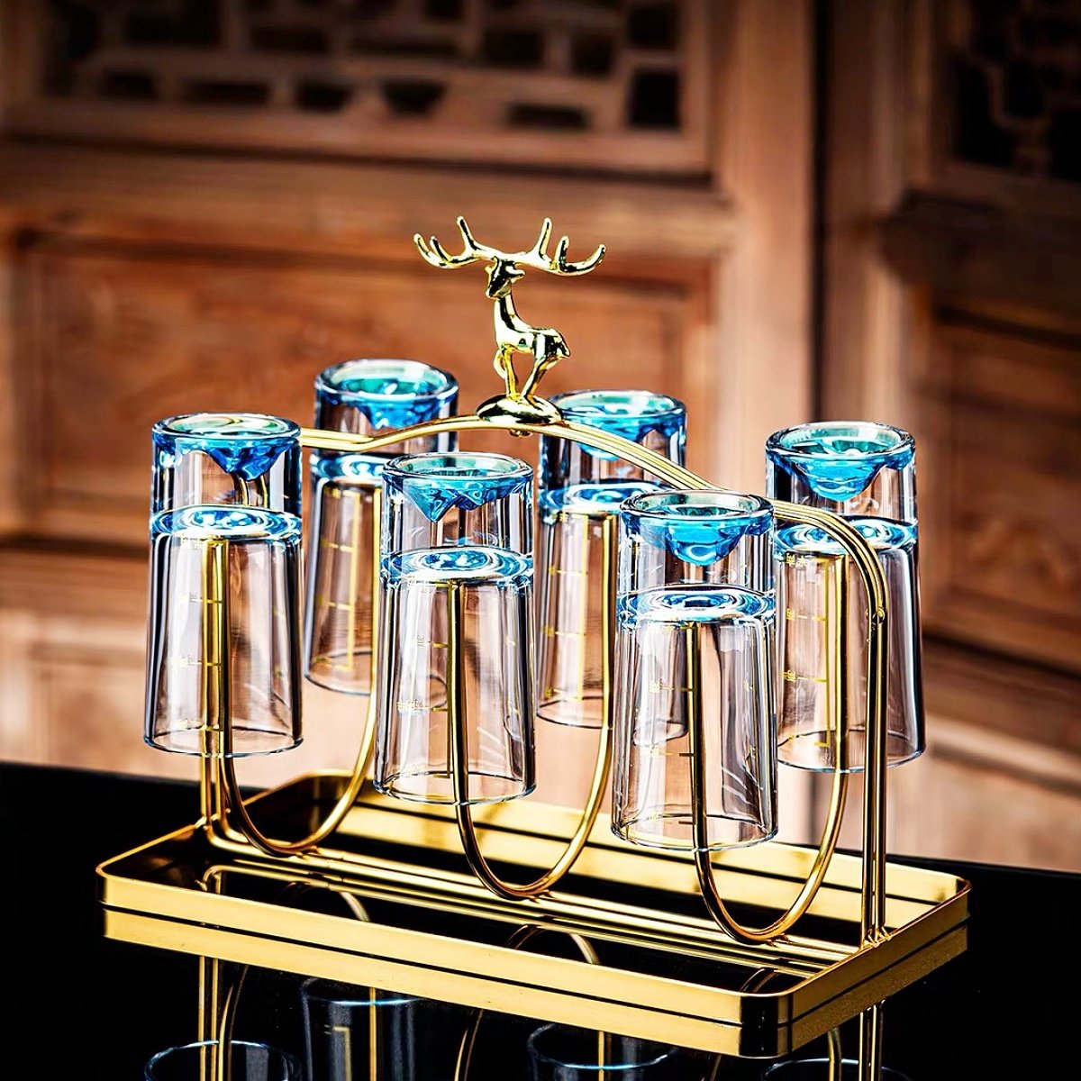 蓝山白酒杯2二两家用套装轻奢高档分酒器刻度新款水晶玻璃酒具盅