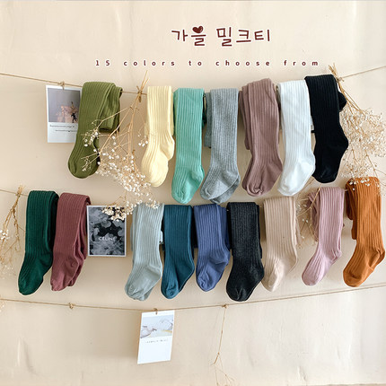 女童连裤袜秋季精梳棉女孩子墨绿打底裤韩版纯色婴儿宝宝连体袜子