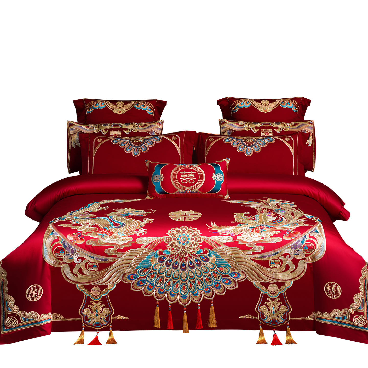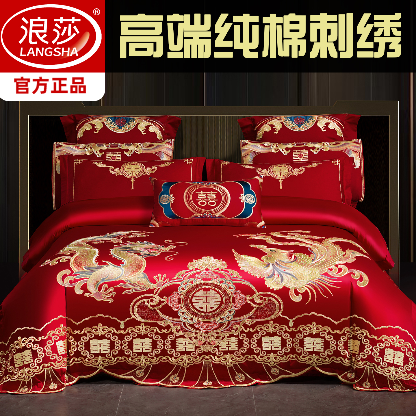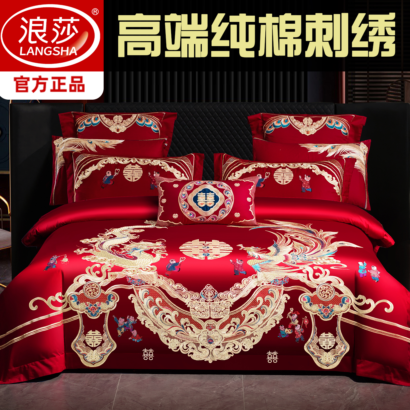 婚庆四件套全棉喜庆结婚龙凤床上用品纯棉婚嫁婚床新婚大红喜被套