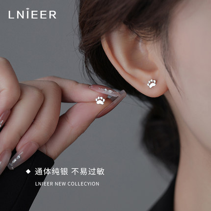 999纯银小猫爪耳钉女小众设计耳环纯银养耳洞免摘小巧耳骨耳饰品