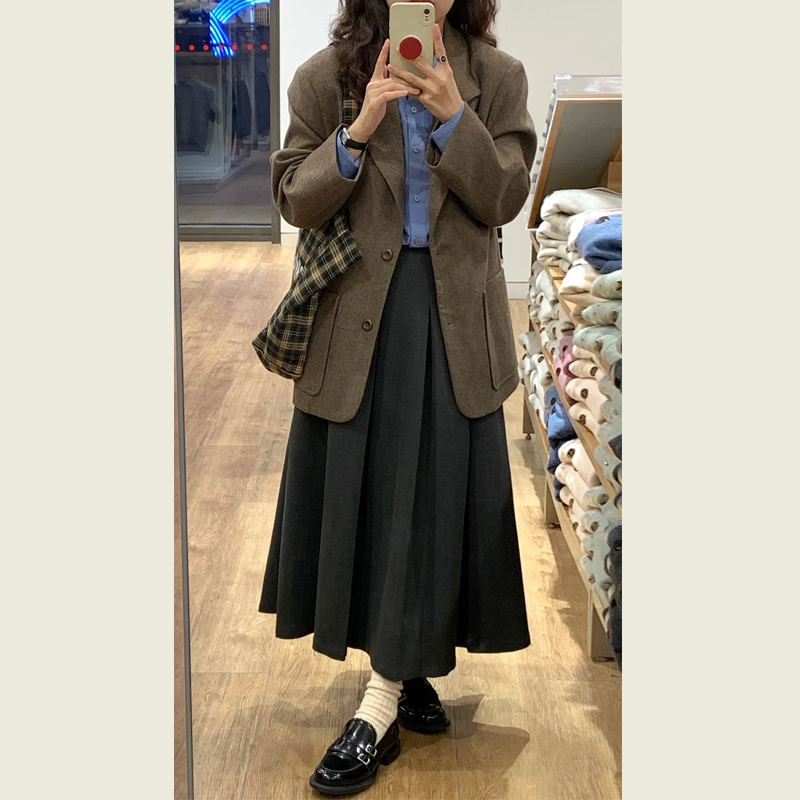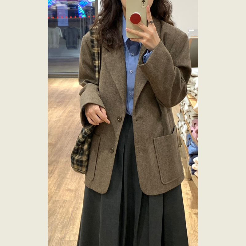 韩版复古高级感咖色毛呢外套女秋冬季小个子宽松休闲西装呢子大衣