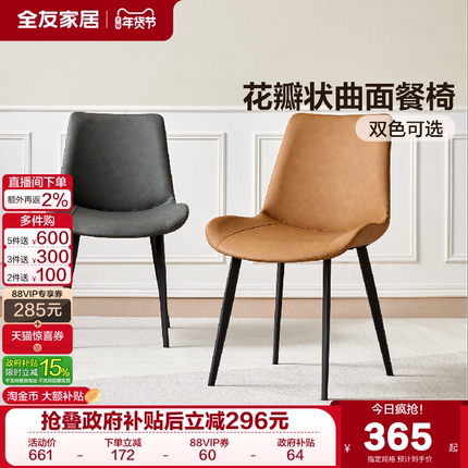 全友家居2025新款意式轻奢餐椅高级感客厅靠背椅子家用软包凳子